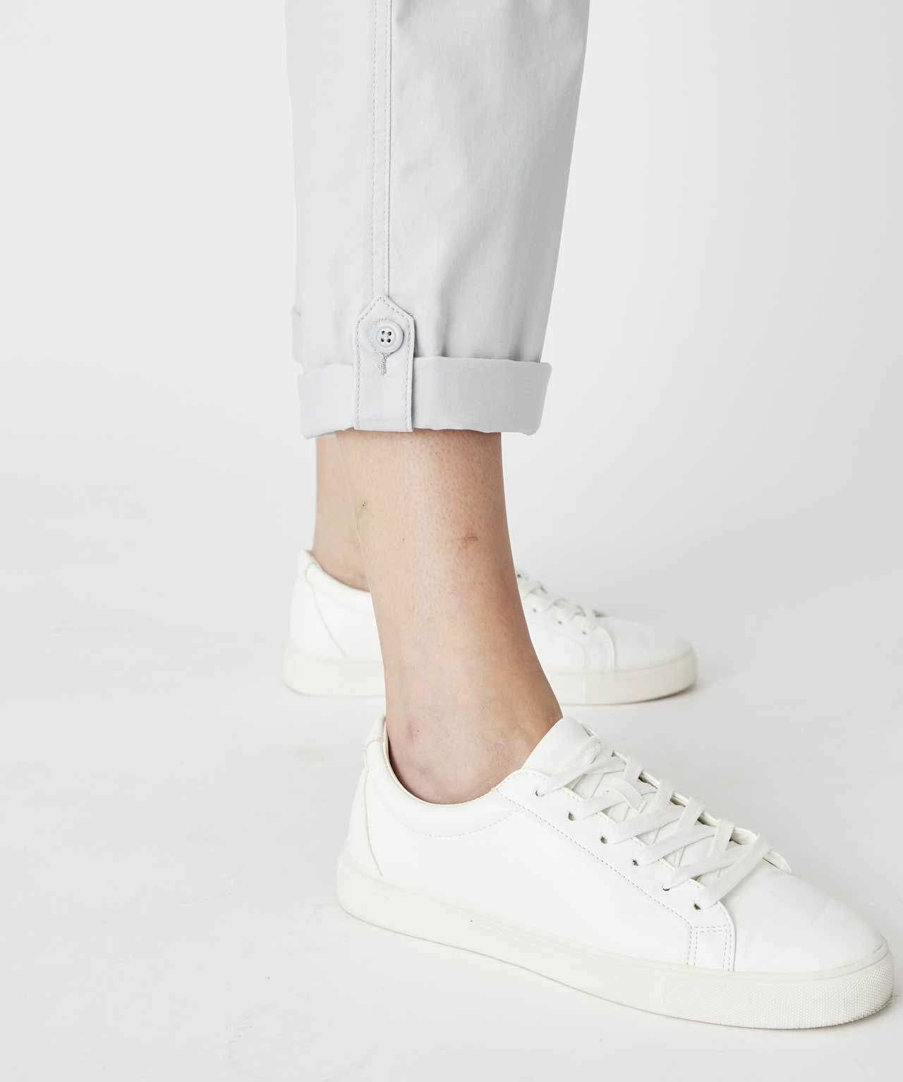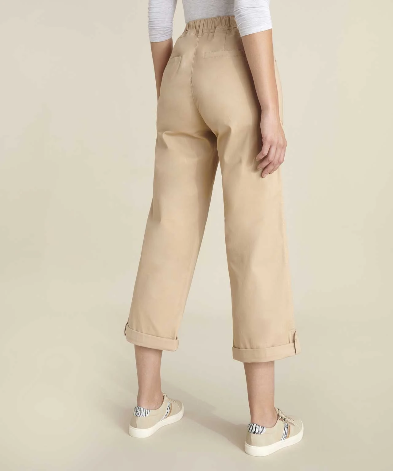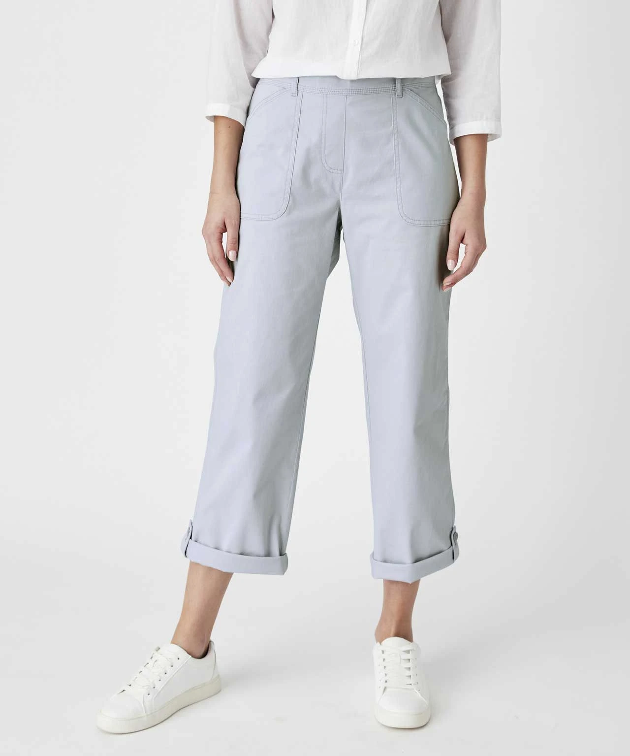Look and feel great this spring with our 7/8 ankle length wide leg trousers. With a touch of stretch at the waist for comfort, patch pockets and turn ups with tab detail. In an easy fit, to look great on casual days. Cotton for comfort that feels fantastic. 98% Cotton, 2% Elastane. Length: 64cm (25″).