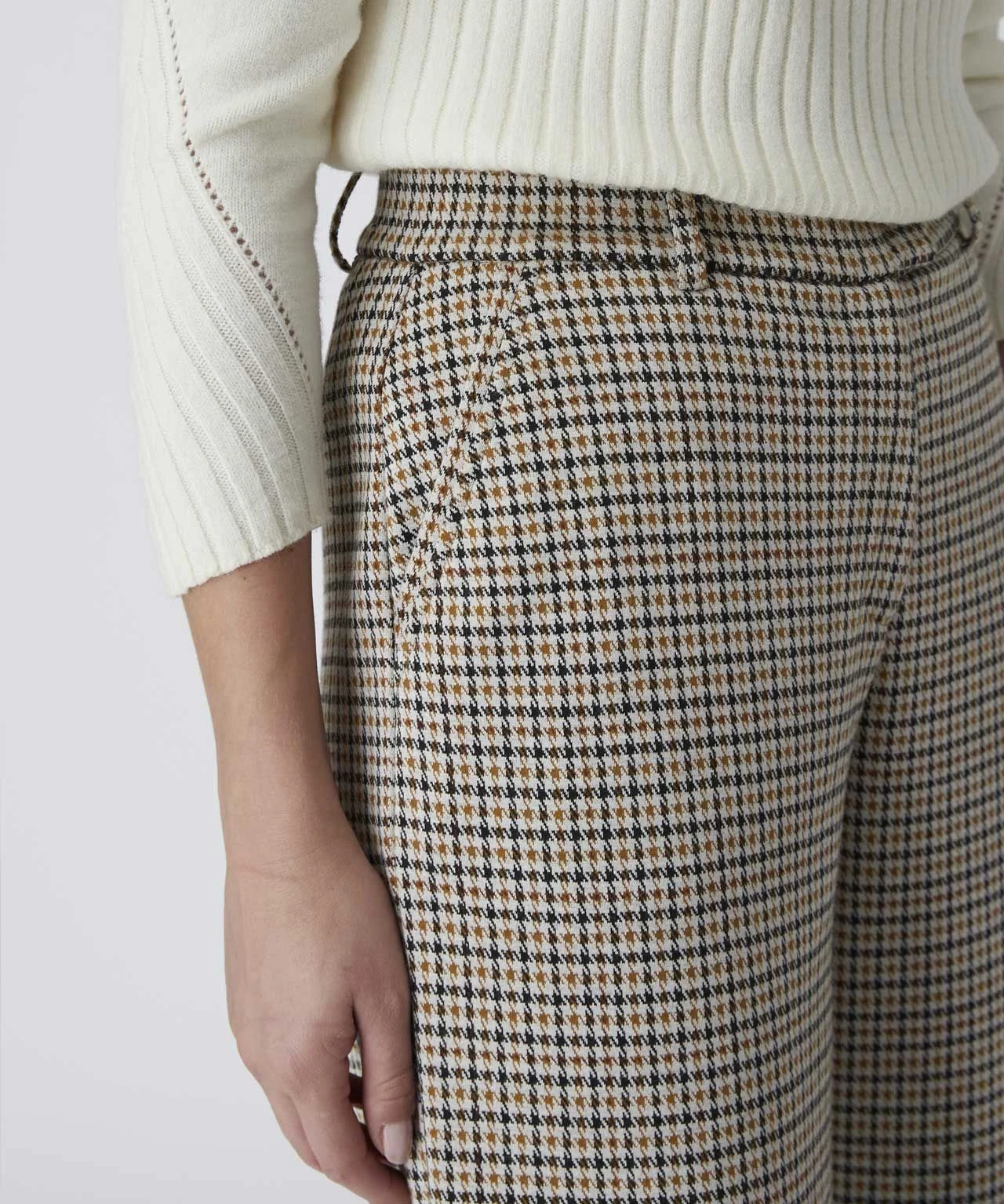 Our wide leg trousers are cut from a stretch check fabric for style and comfort in one.