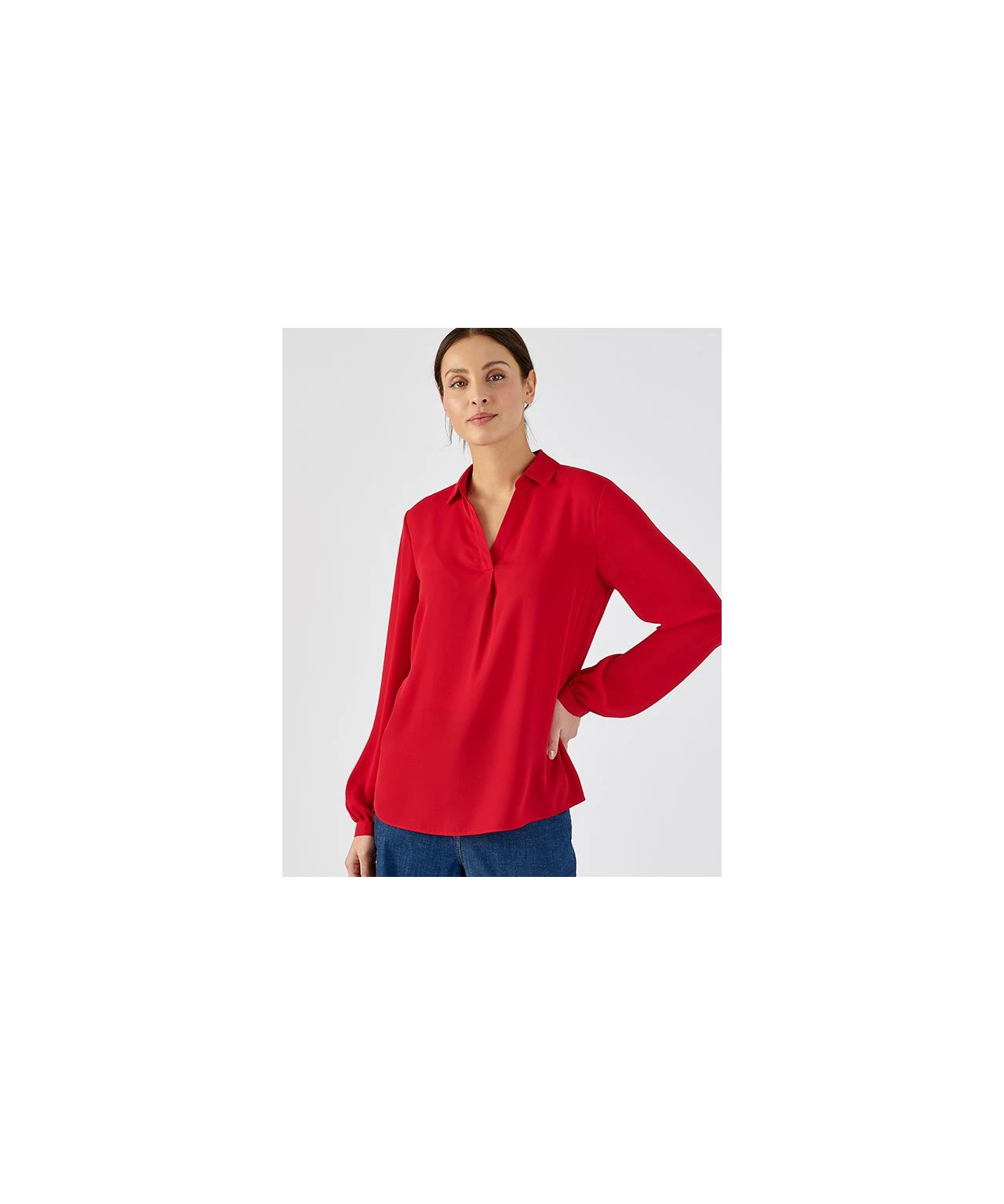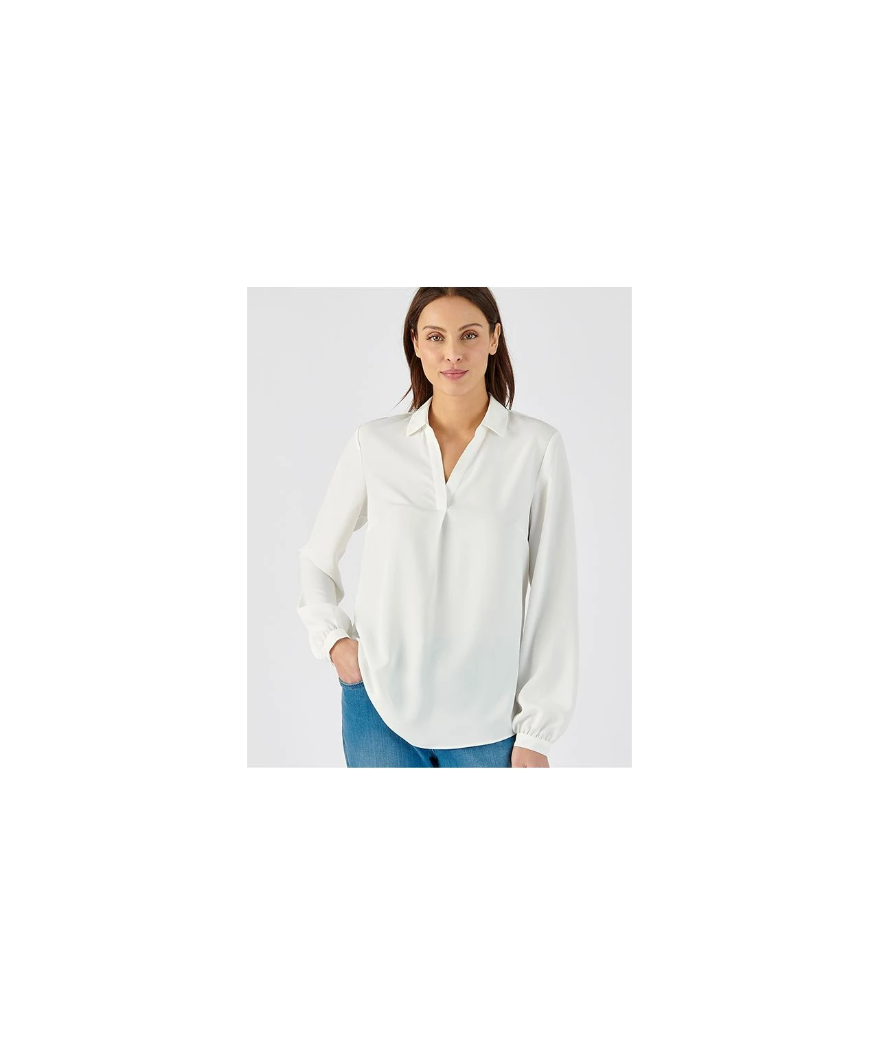 A blouse that will take you from day to evening, with ease. Smart and easy to care for with an open neckline, collar and cuffs. In a choice of colours, great with tailoring, jeans or printed skirts. Woven. Regular fit. Machine washable. 100% Polyester. Length: 69cm (27″) approx.