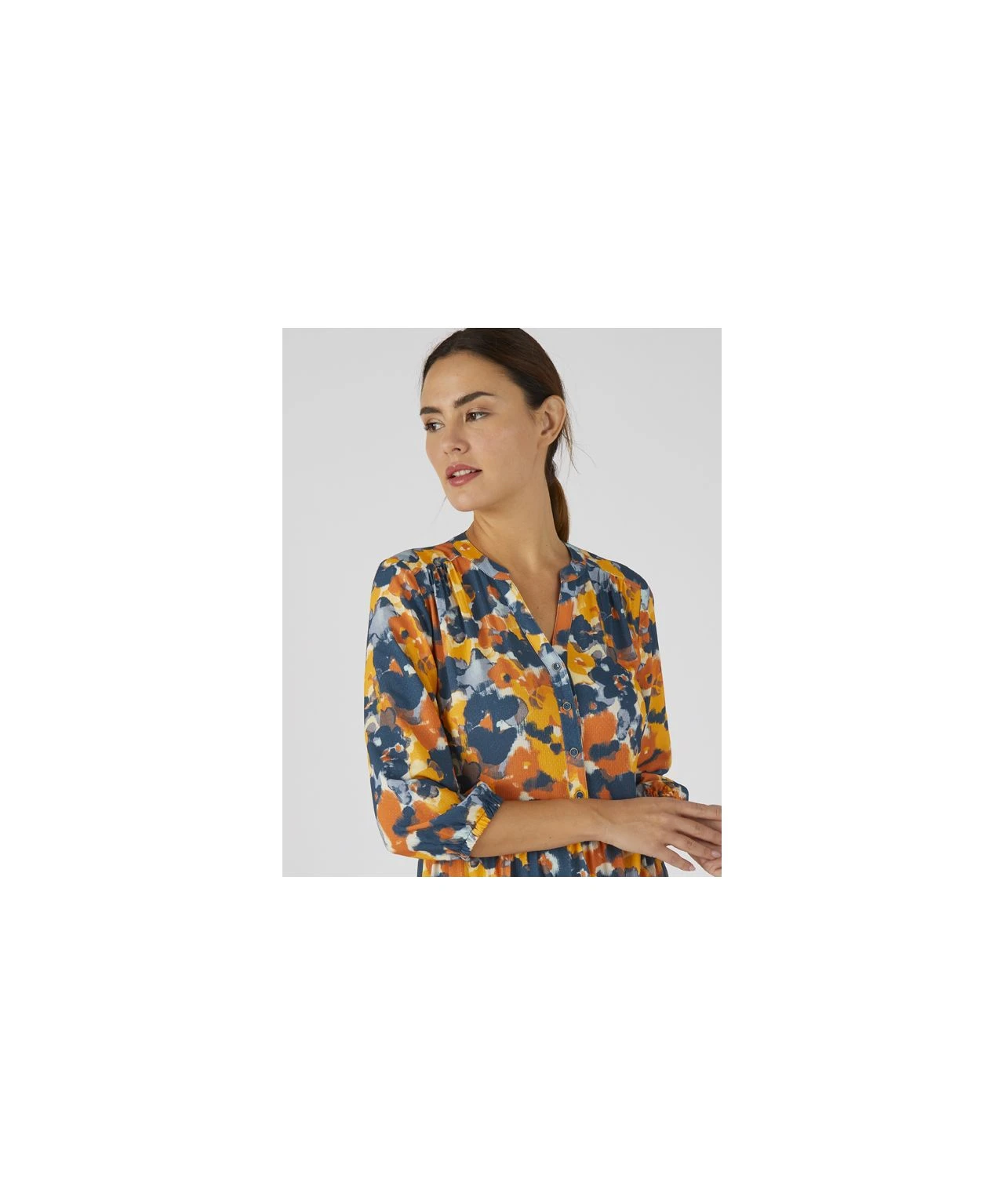 Dresses are so fashionable and this one is easy to wear, too. In a bright floral print with tiered skirt for a full shape. Front button fastening to the waist with elasticated cuffs to the 3/4 sleeves. Cool, comfortable and easy care, great with sandals or trainers. Woven. Regular fit. 100% Viscose. Length: 117cm (46″) approx.