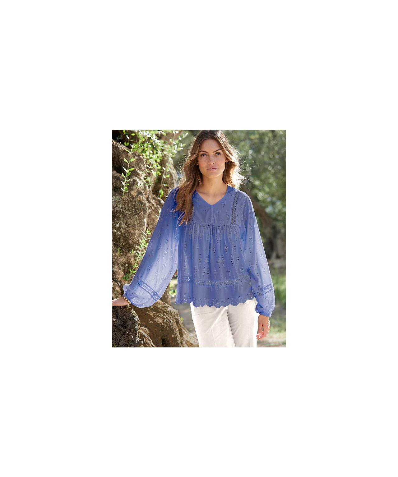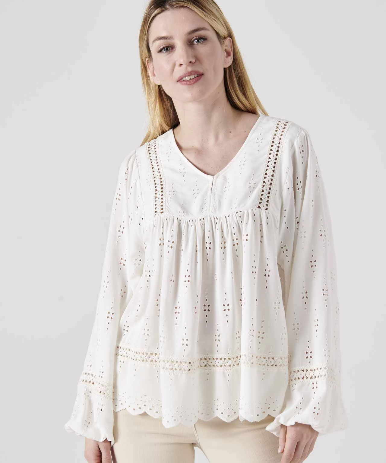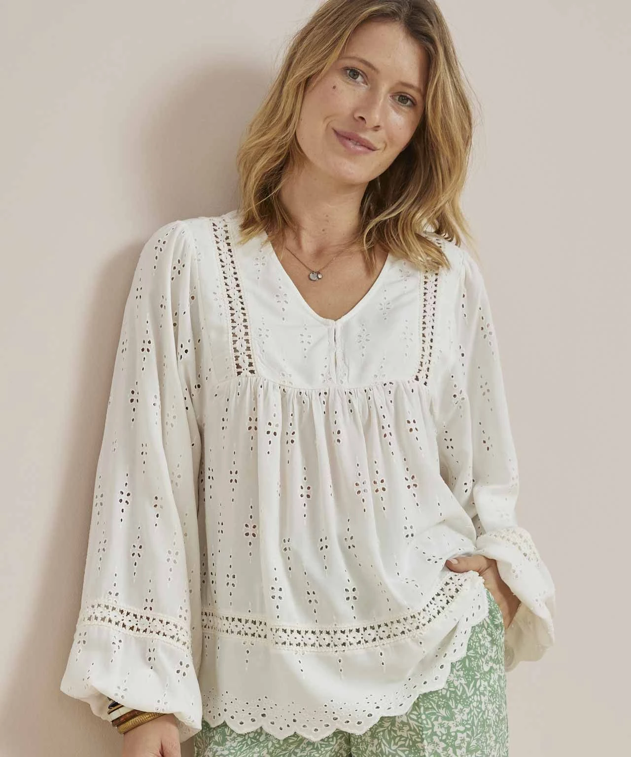 Make a fashion statement with our pretty broderie anglais tunic blouse.