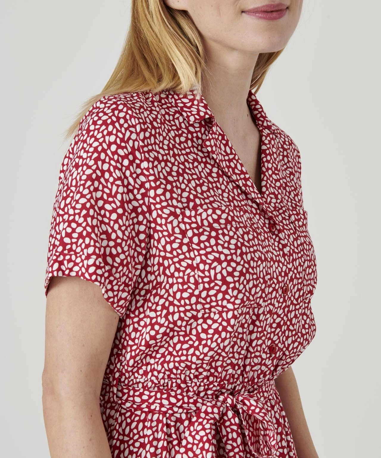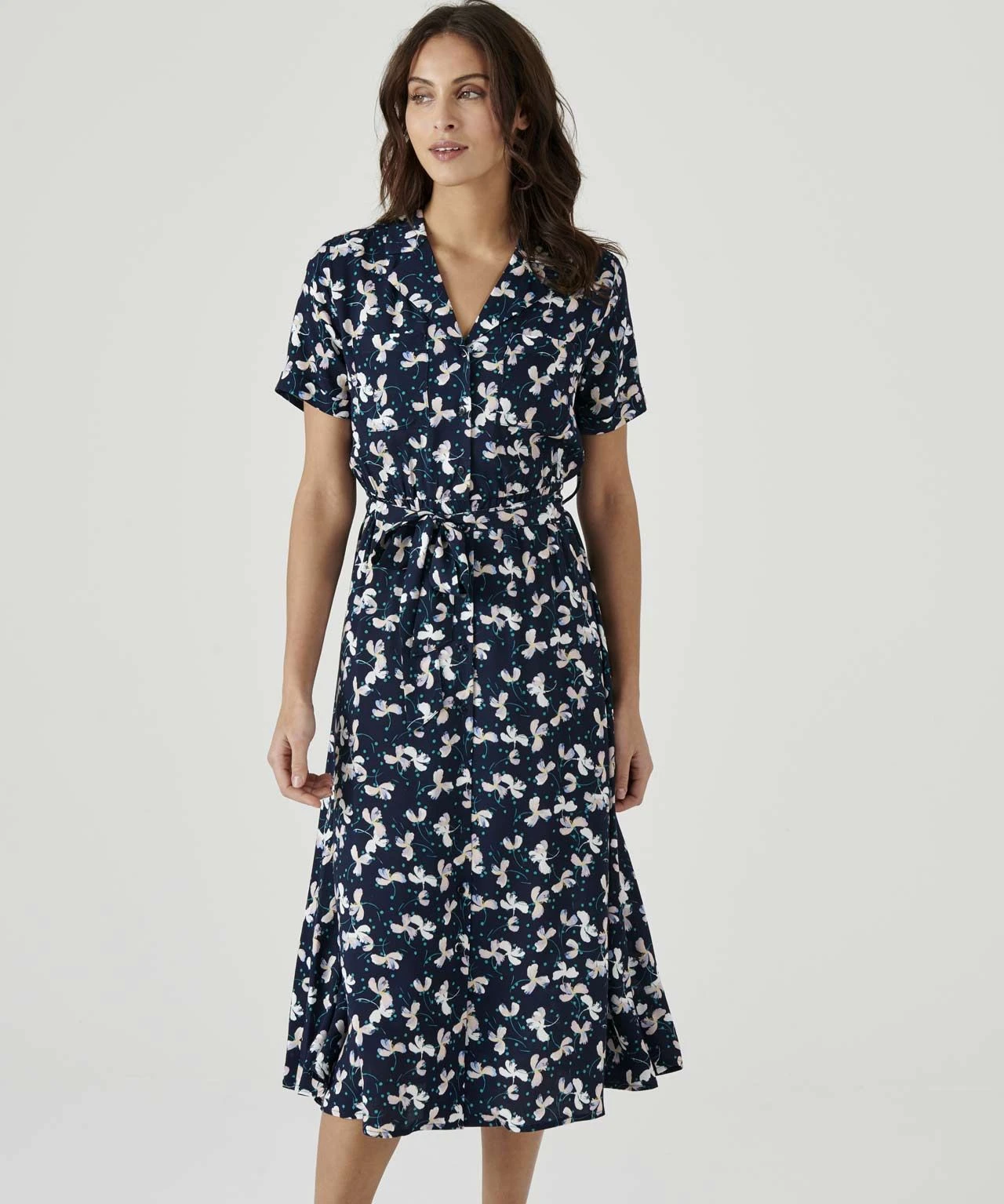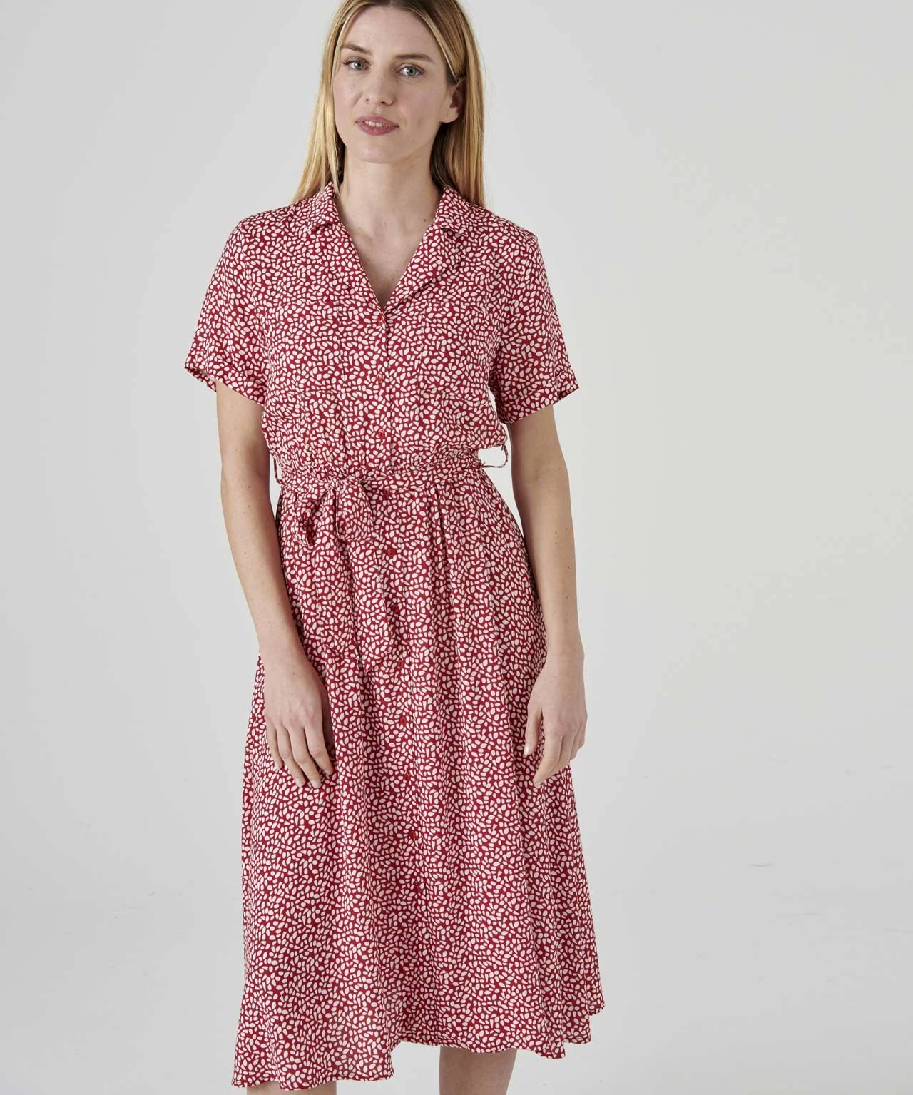 Our print tea dress is a must-have for summer, in a wearable button through shape with tie belt.