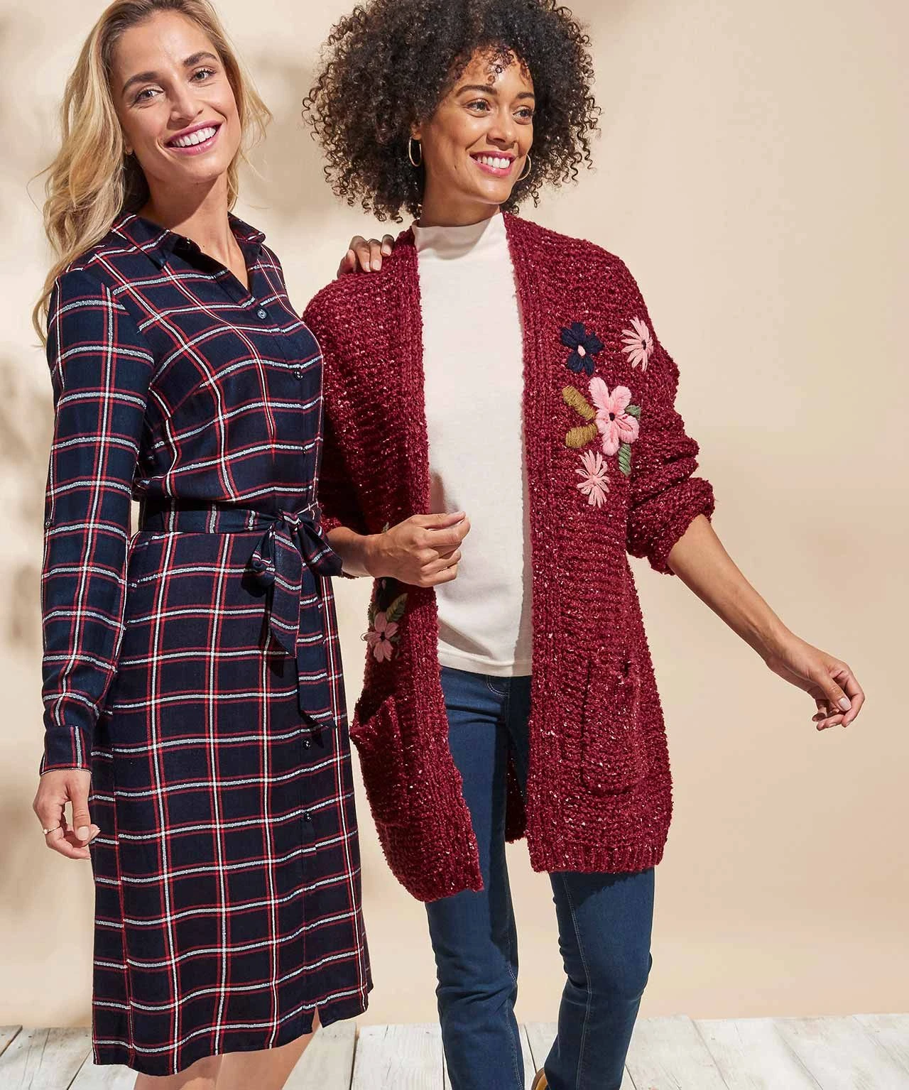 Classic shirt dress with a tie waist to add shape, in a cool check fabric that works throughout the year.