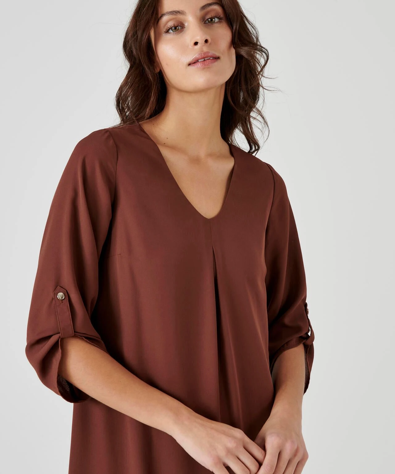Bring your spring wardrobe bang up to date with our relaxed and elegant dress. In an easy, flattering shape with V neckline, three quarter tab back sleeves and an inverted pleat at the front. Fully lined for cling free comfort. Comfort fit. 100% Polyester. Lining: 100% Polyester. Length: 102cm (40″) approx.
