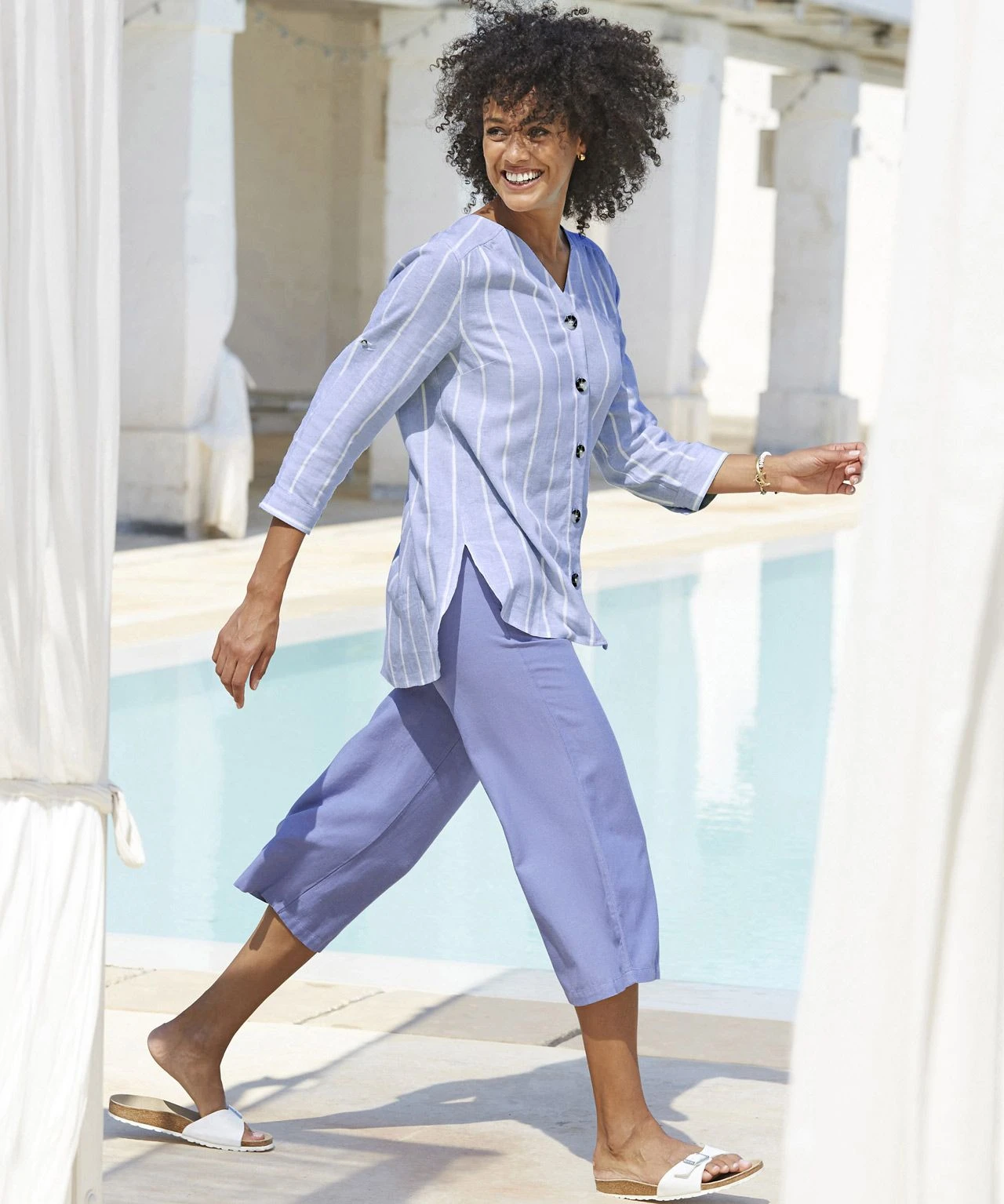 Step out in style with our stripe crop trousers in a linen blend fabric for quality and coolness.