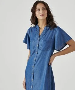 In a soft and wearable Tencel fabric, this button through dress makes warm weather style easy. With turn-up sleeves, drawstring belt and flap pockets, it’s an effortless alternative to denim for lightweight comfort and style. Regular fit. Machine washable. 100% Lyocell. Length: 97cm (38 inch).