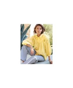 Make a statement and feel cool with our lightweight, loose fitting pure cotton shirt. A key fashion look, perfect for hot days, with 3/4 balloon sleeves, gathering from the yoke and tonal embellishment. In a choice of sunshine-shades to complete your look with jeans or smart trousers. Woven. Comfort fit. 100% Cotton. Length: 64cm (25″) approx.