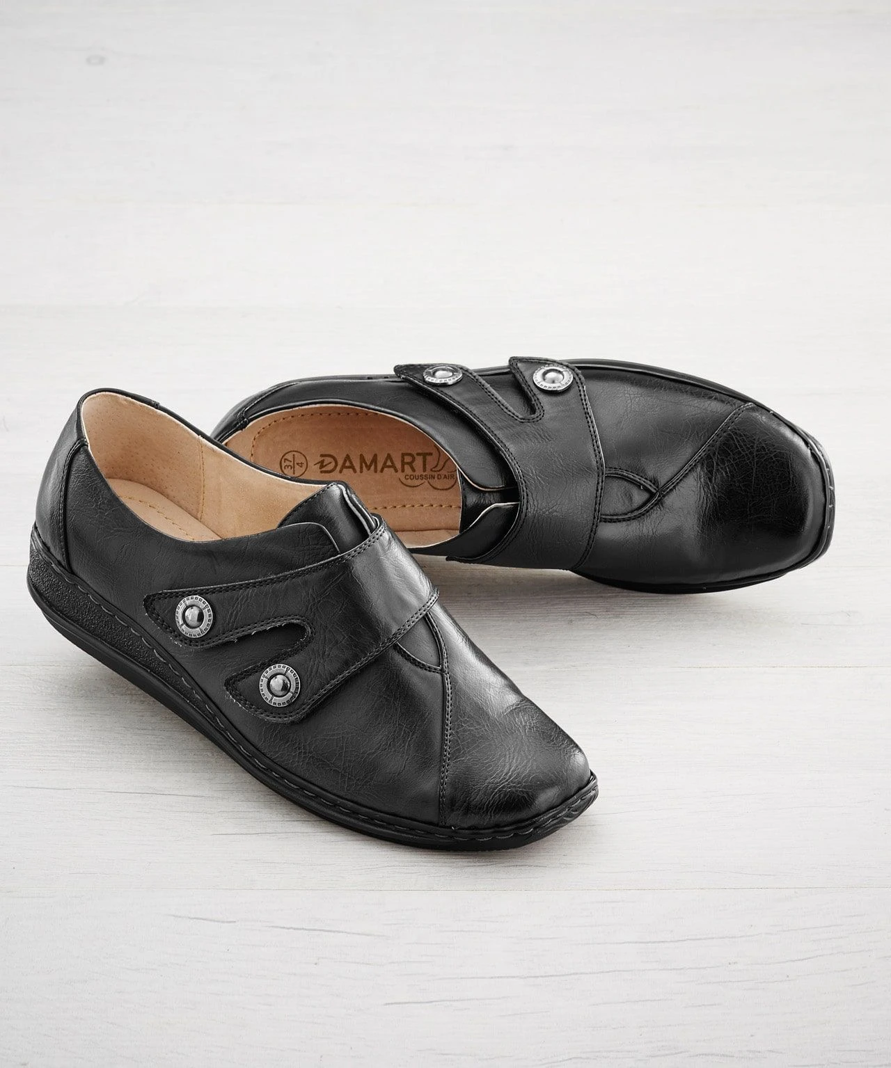 We’ve made these women’s shoes with touch fastenings so you can get the fit just right. Supportive and stylish with a cross-over bar trim to hold them on securely. With a pure leather cushioned sock for endless comfort. Heel height: approx. 3.5cm. Upper/Sole: Other materials. Lining: Leather. Width EE & EEE.