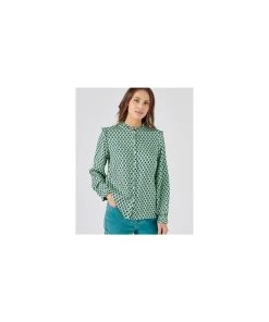 Super stylish, our print blouse has a neat Mandarin collar for a smart look.