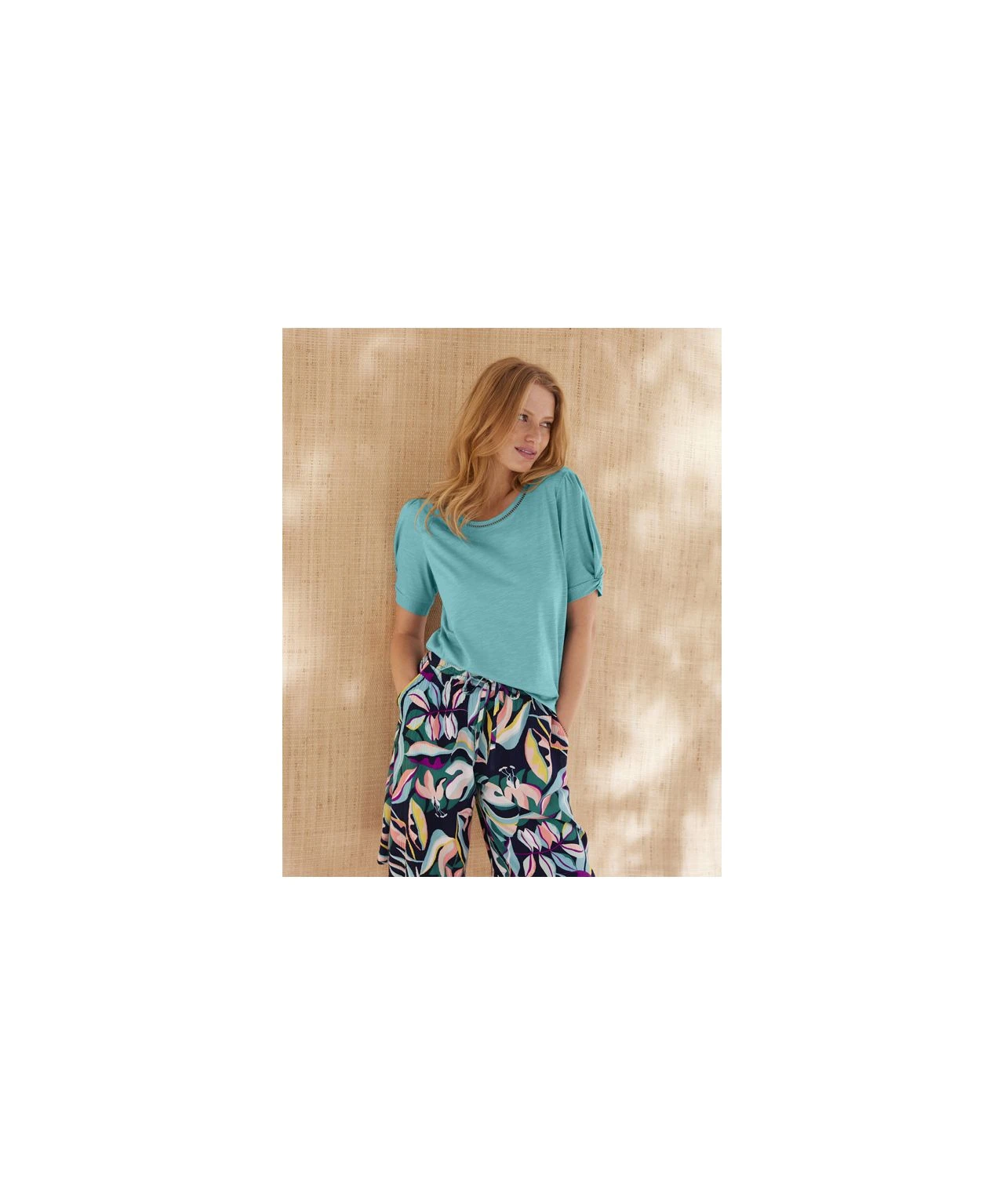 A notch up from your average T-shirt, this top has all the detail you’ve been waiting for. Made from eco-friendly and super soft cotton modal blend, it’s cool and comfortable. With gathering and twist detail on the sleeves for an extra touch of style. With sleeve gather detail and knot detail at the bottom of sleeves. Regular fit. 50% Cotton, 50% Modal. Length: 64cm (25″) approx.