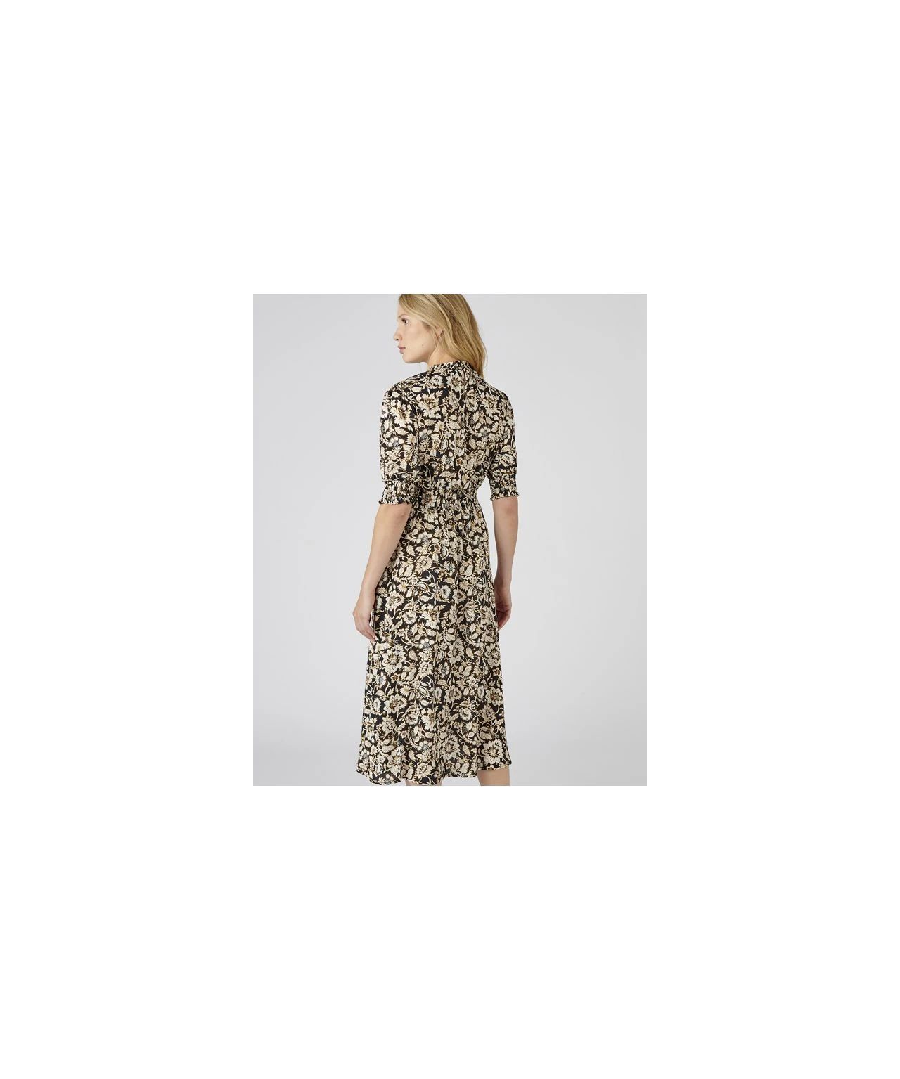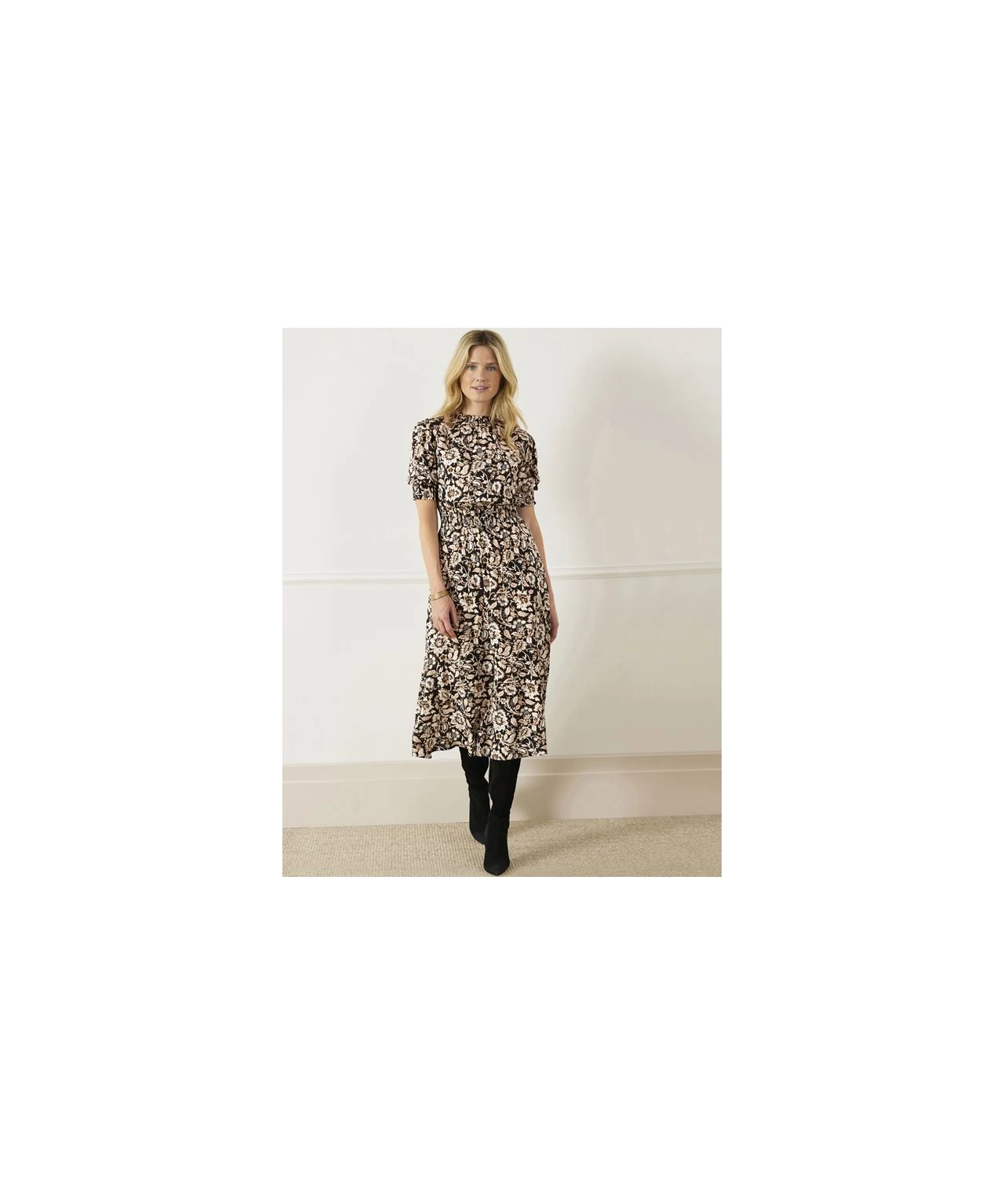 This lovely print dress is a brilliant all-rounder. Wear with boots in cooler months and pop with sandals or trainers when it warms up. Ideal length and a very flattering shape. With shirred elastic waist, cuffs and neckline. Woven. Regular fit. 100% Viscose. Length: 117cm (46″) approx.