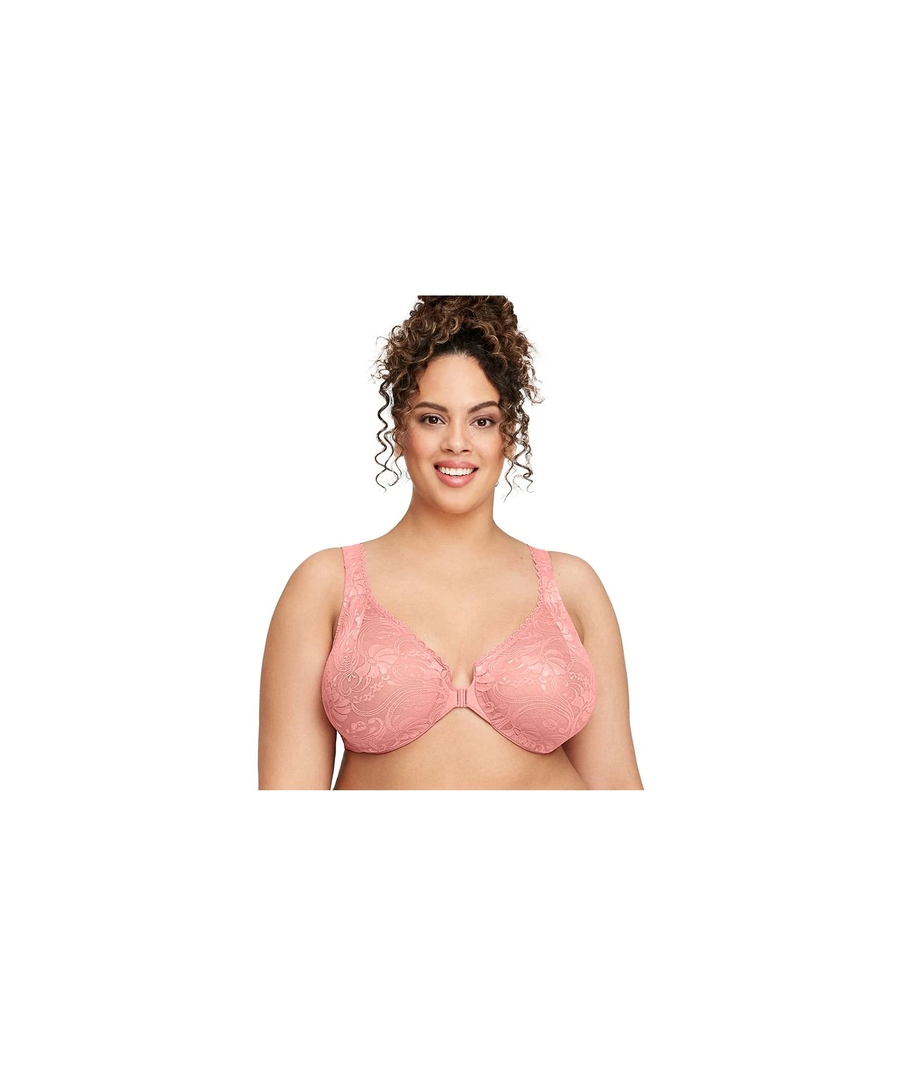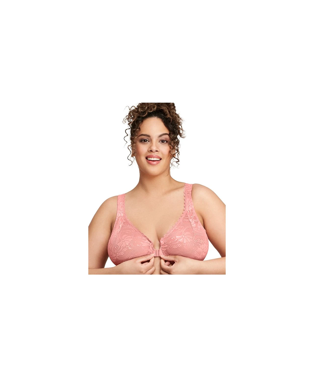 The Front Fastening Wonder Wired Bra by Glamorise is designed to combine feminine style with comfortable support. Complete with stretch lace cups and an easy front-hook closure, you can adjust the straps to create your perfect fit. With a cushioned inner band and padded wire channel for all day comfort. 80% Polyamide, 15% Elastane, 5% Polyester.