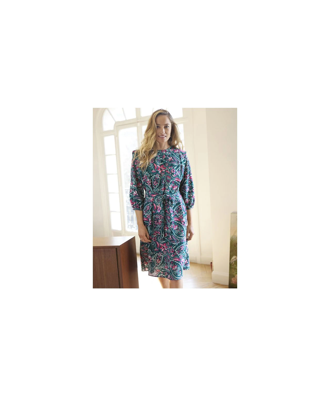 On-trend and easy to wear, what could be better? Our print dress has shoulder detail, three quarter sleeves, buttoned cuffs and a self-fabric tie belt. Woven. Comfort fit. 100% Polyester. Length: 102cm (40″).