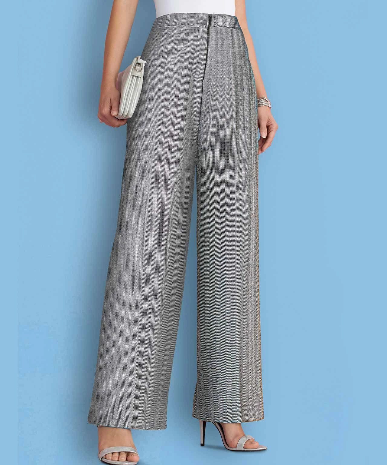 Stretch wide leg trousers in a smart herringbone check. A wardrobe classic that guarantees wearable style.