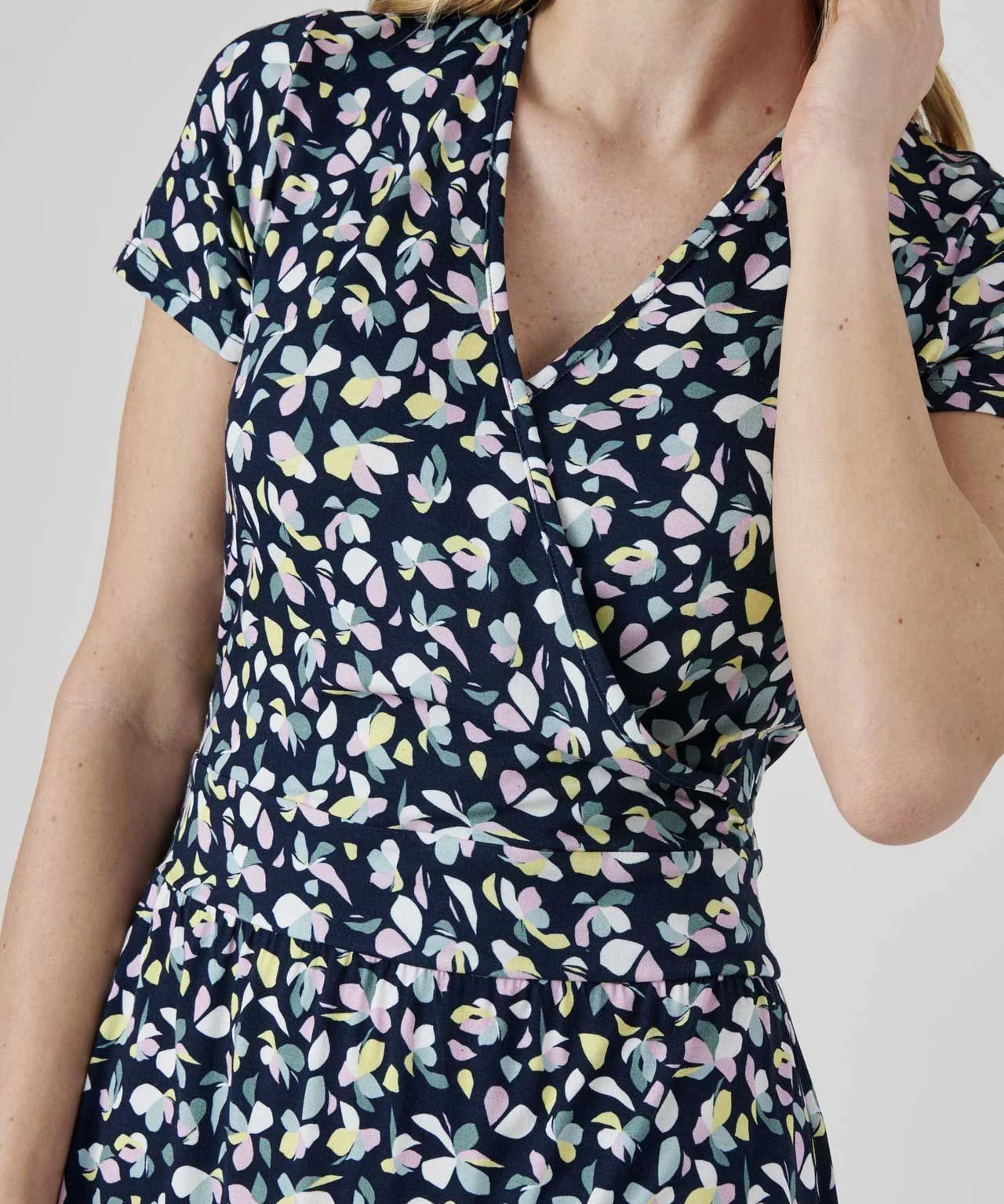 A dress you can slip on for so many occasions, in our soft and stretchy feel-good jersey. Mock wrap styling makes it easy to wear, in a choice of bright prints liven up your look. Team with trainers or sandals for two different looks. 95% Viscose, 5% Elastane. Length: 97cm (38″) approx.