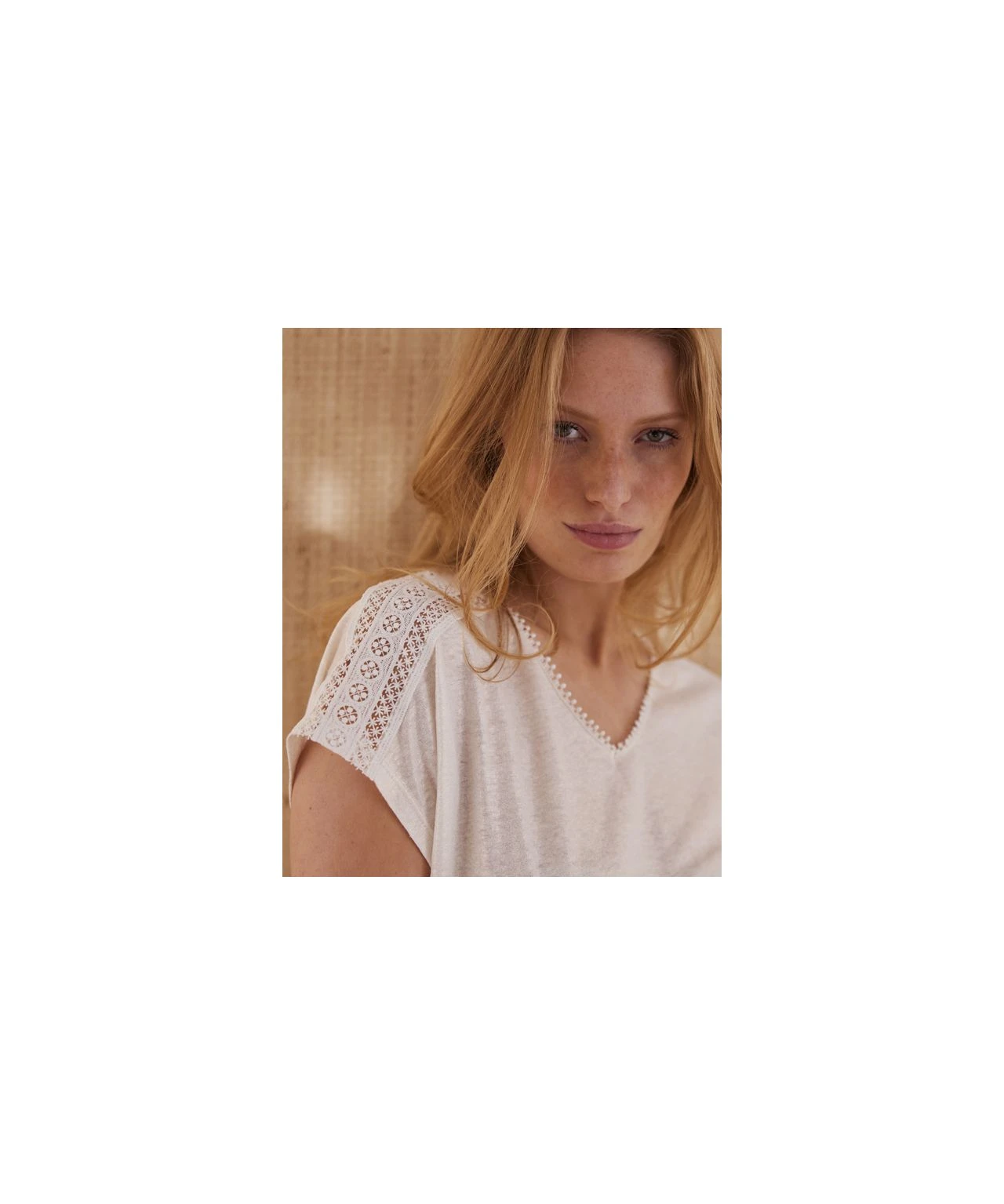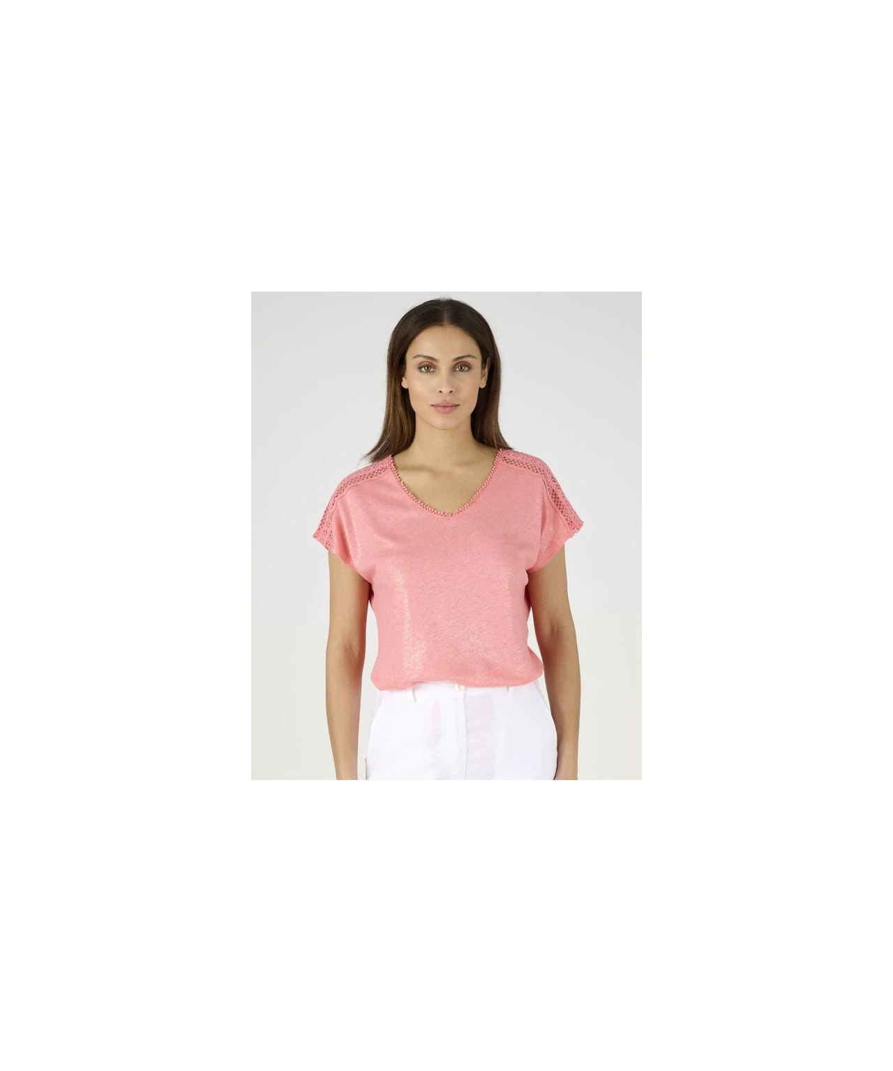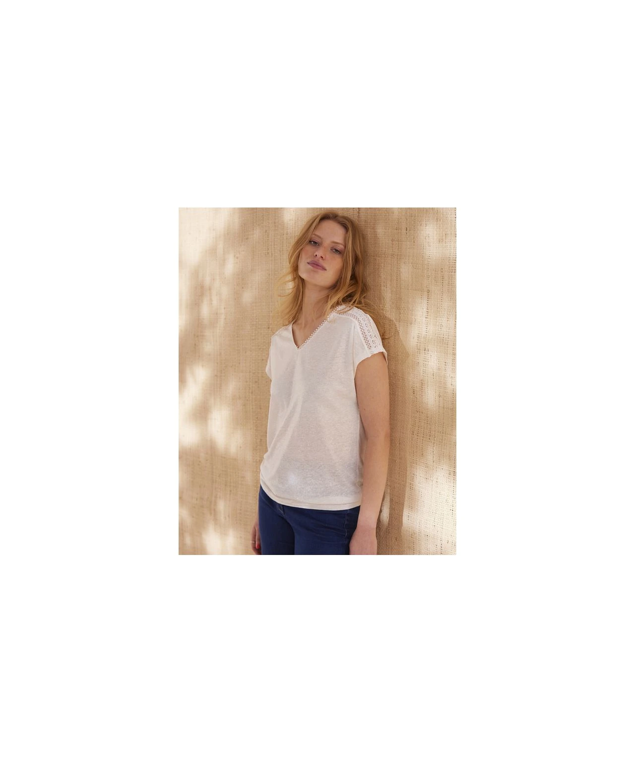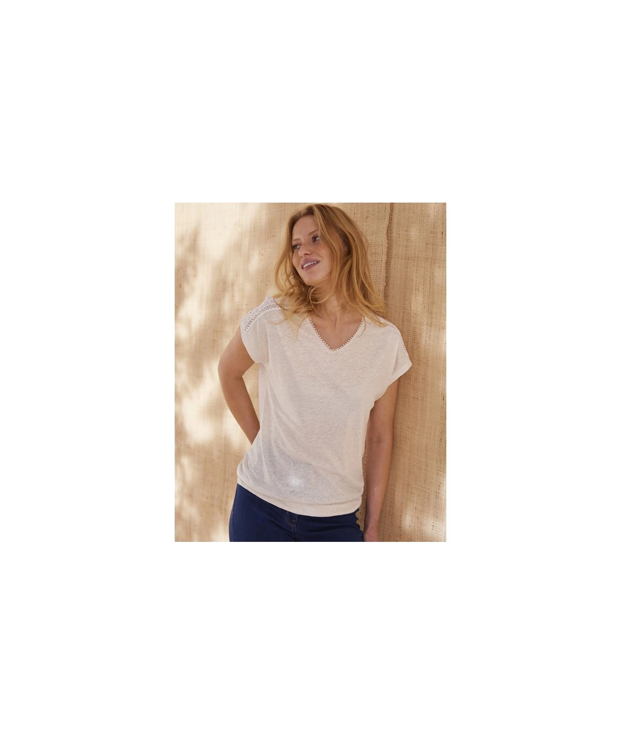 Bring on the warmer weather, with our cool and comfortable on-trend linen mix T-shirt. The flattering and cool V neckline is trimmed with matching lace, for a stylish look. Equally suited to shorts for a day out a it is to your favourite jeans in the evening. With lace trim detail. Regular fit. 55% Viscose, 45% Linen. Length: 64cm (25″) approx.