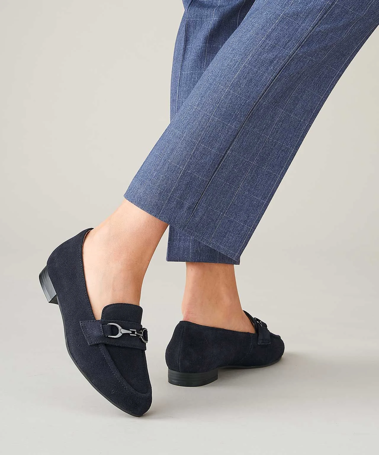 Ladies leather loafers with clasp detail for a stylish twist. In genuine suede for a quality look, with a removable insole so you can get the fit right for you.