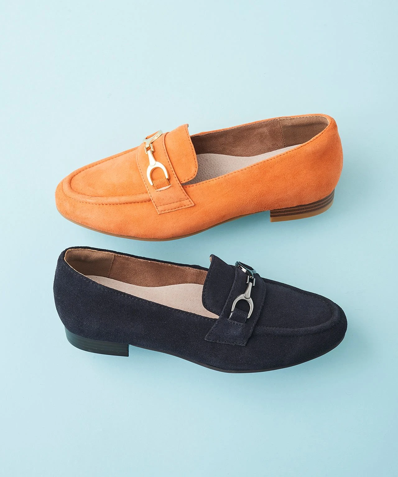 Ladies leather loafers with clasp detail for a stylish twist. In genuine suede for a quality look, with a removable insole so you can get the fit right for you. In a choice of black or fashion colours to work with your seasonal wardrobe. Heel height: approx. 2cm. Upper/Lining/Sock: Leather. Sole: Other materials.