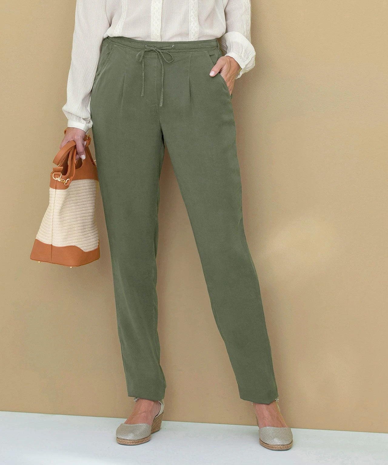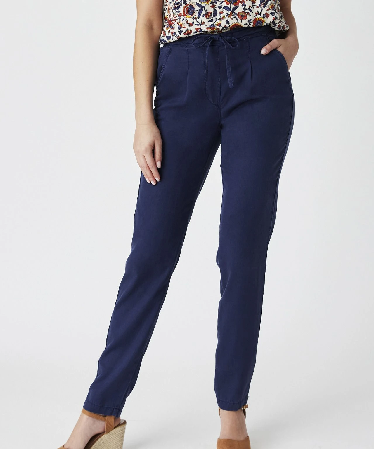A great piece for the warmer months, these pull-on trousers are made from our favourite super soft fabric. With an elasticated waist and narrow leg line, in a choice of seasonal shades. Cut for relaxed comfort and a flattering modern look, with side pockets and drawcord waist detailing. Team them with t-shirts or light knitwear to suit the weather. Comfort fit.