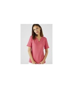 You’ll feel great when you wear this pure cotton T-shirt – the frill trims add a really pretty look with gathering detail to front of sleeve. With Tunisian style collar in Organic cotton – choose from plain or print to suit your look. Knitted. Regular fit. Machine washable. Textured fabric,100% Cotton. Length: 64cm (25″) approx.