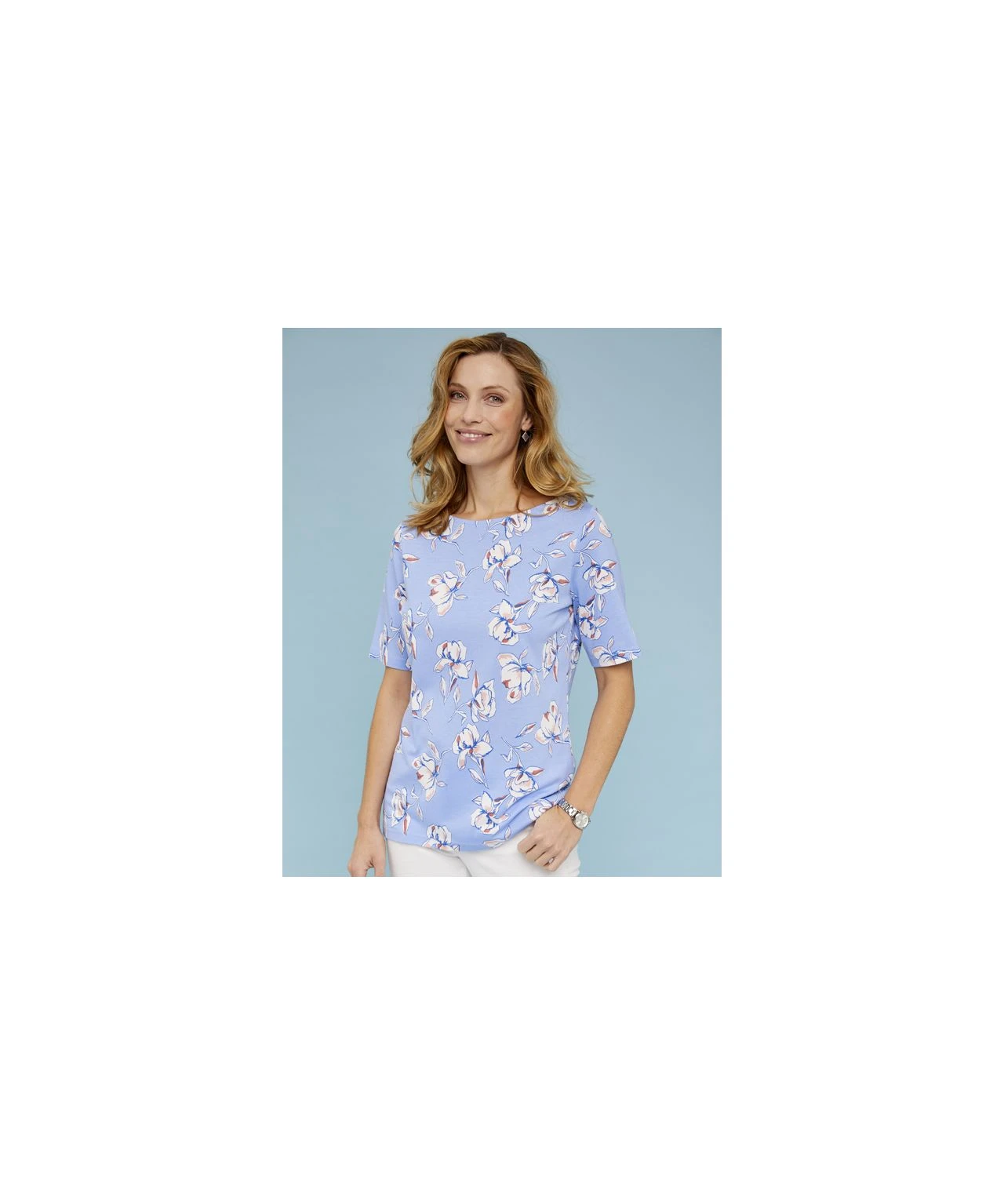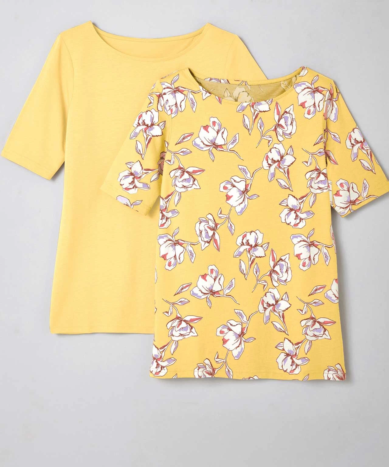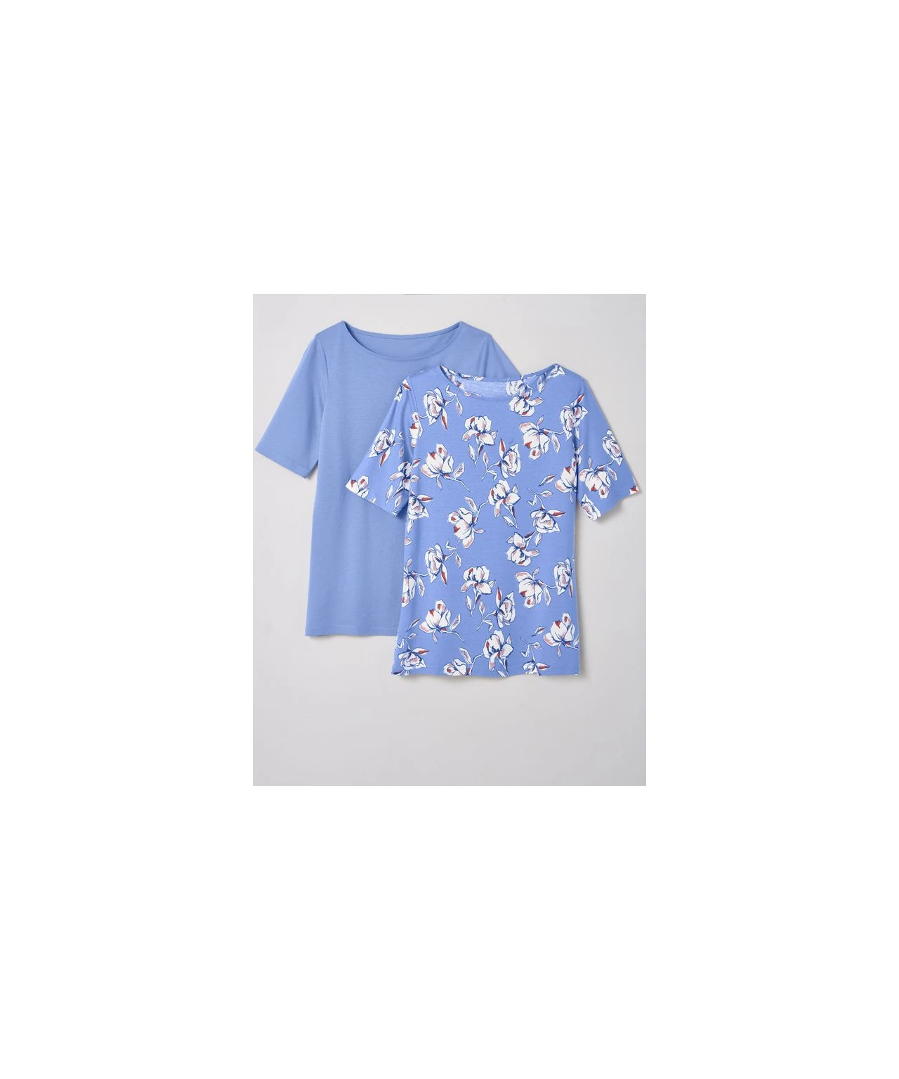Stock up for the warmer seasons with our pack of two flattering t-shirts, with 3/4 sleeves and slash neckline that makes them so easy to wear. With one floral print and one plain for two different looks, both in our fabulously soft cotton and modal blend. Knitted. Regular fit.