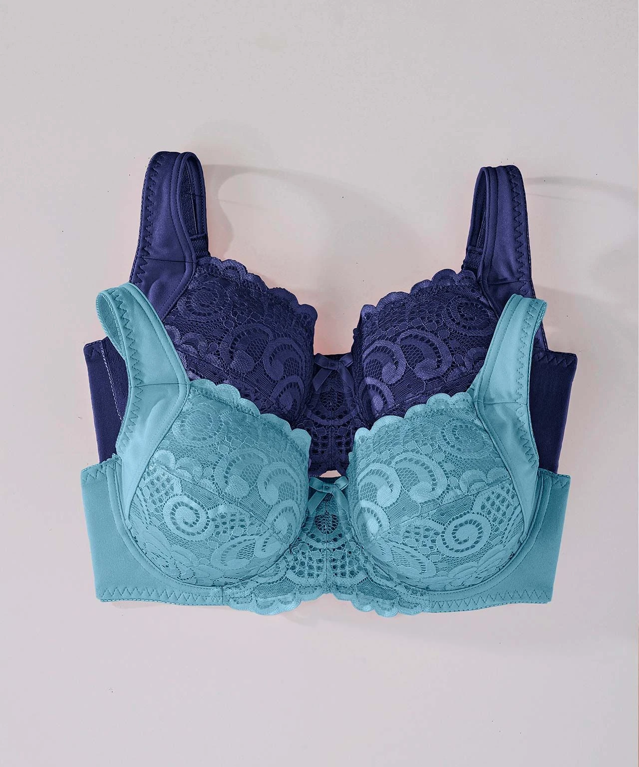 Our best-selling pack of two bras are available in a wide range of colours and designed for femininity and comfort.