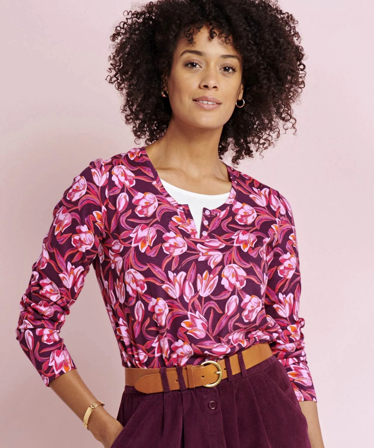 This top gives you the layered look from one easy wear piece ¿ in pure cotton for breathable freshness and comfort. The bright floral print with mock white T-shirt detail makes it great choice for spring and summer days. 100% Cotton. Length: 64cm (25″) approx.