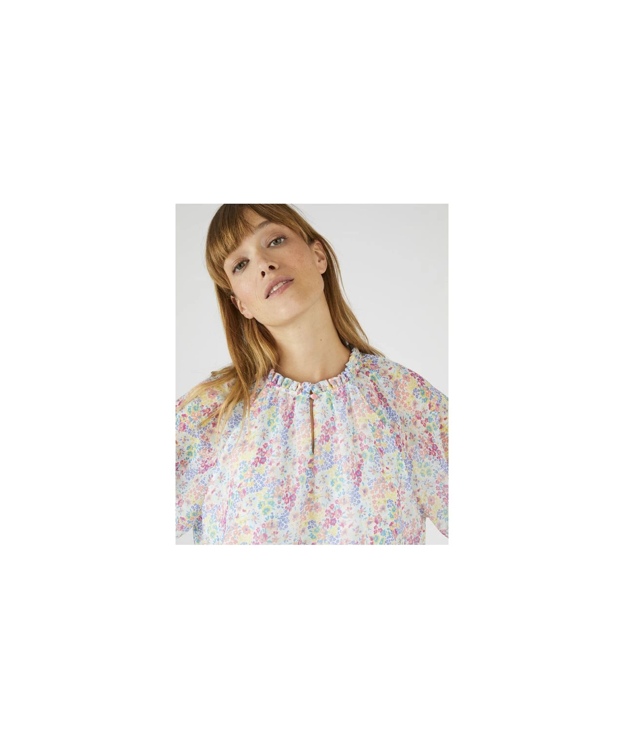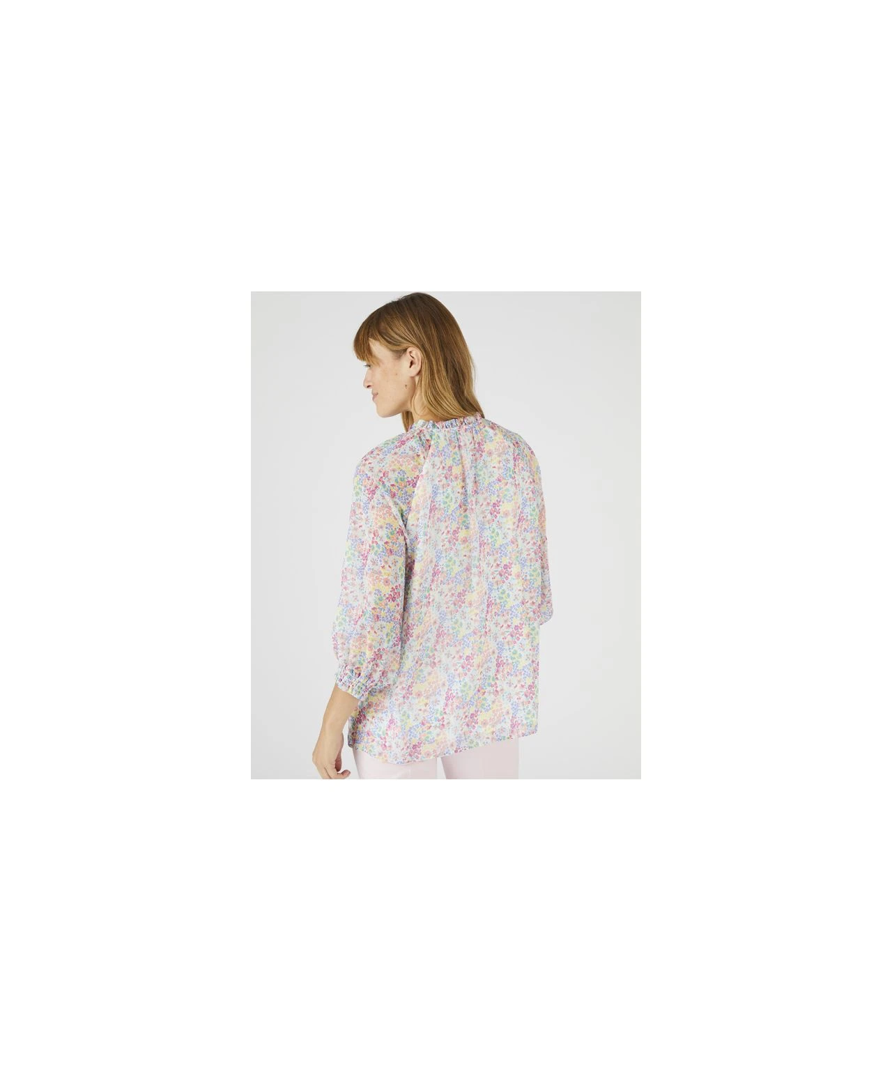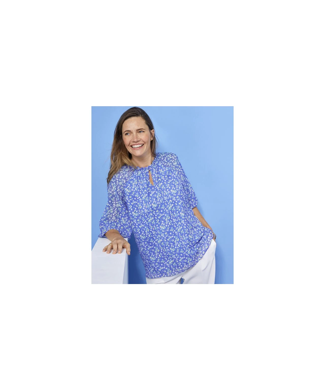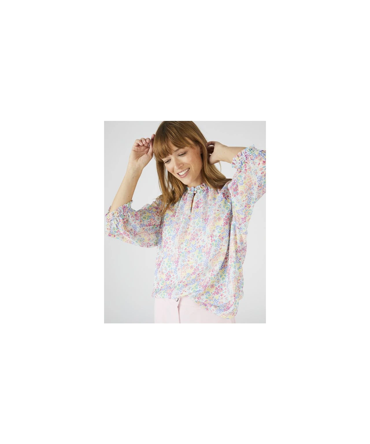 Pretty detail elevates this easy-to-wear blouse for so many occasions. Gathered at the neck and 3/4 sleeve cuffs, with a roomy body shape for comfort and flattery. In a wide range of vibrant florals in a cool, easy care fabric. Woven. Regular fit. 100% Polyester. Length: 64cm (25″) approx.