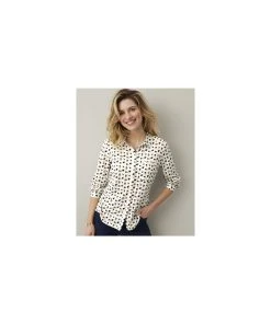 Get the smart look of a blouse with the comfort of stretch. Choose from a great range of print designs – from spots to florals ¿ and team this blouse with everything from smart skirts to your favourite jeans. Knitted. Regular fit. Machine washable. 92% Polyester, 8% Elastane. Length: 64cm (25″) approx.