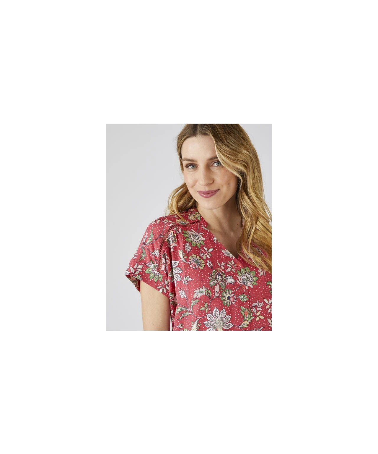 You can brighten up any outfit with this pretty print blouse. Finished with ladder work detail across the shoulders and a V neckline, you can wear it tucked in or loose for two different looks. Woven. Grown on sleeves. Comfort fit. Machine washable. 100% Viscose. Length: 64cm (25″) approx.