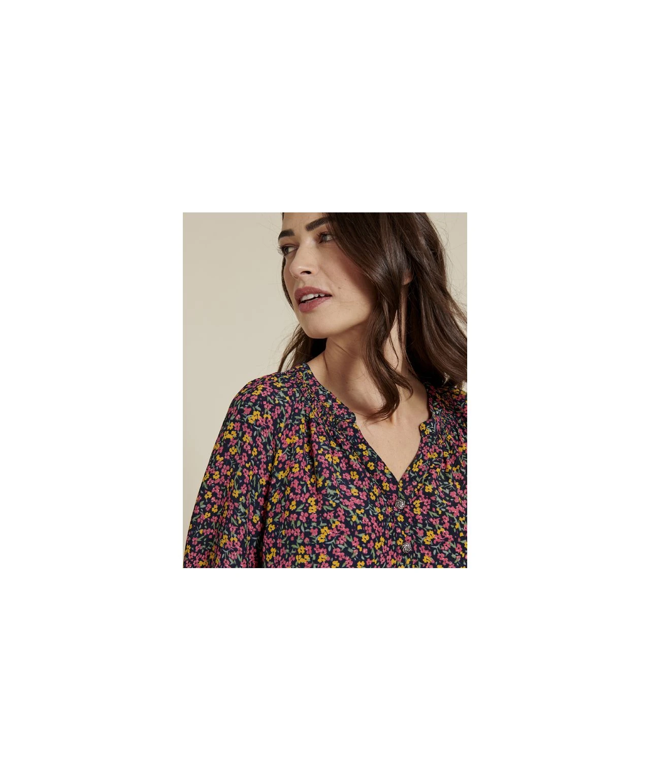 Any outfit will be brighter with this floral print blouse. A Tunisian style collar and 3/4 sleeves make it effortlessly flattering, in our cool and easy care fabric for everyday wear. Great with jeans or smarter separates. Woven. Regular fit. Machine washable. 100% Viscose. Length: 69cm (27″) approx.