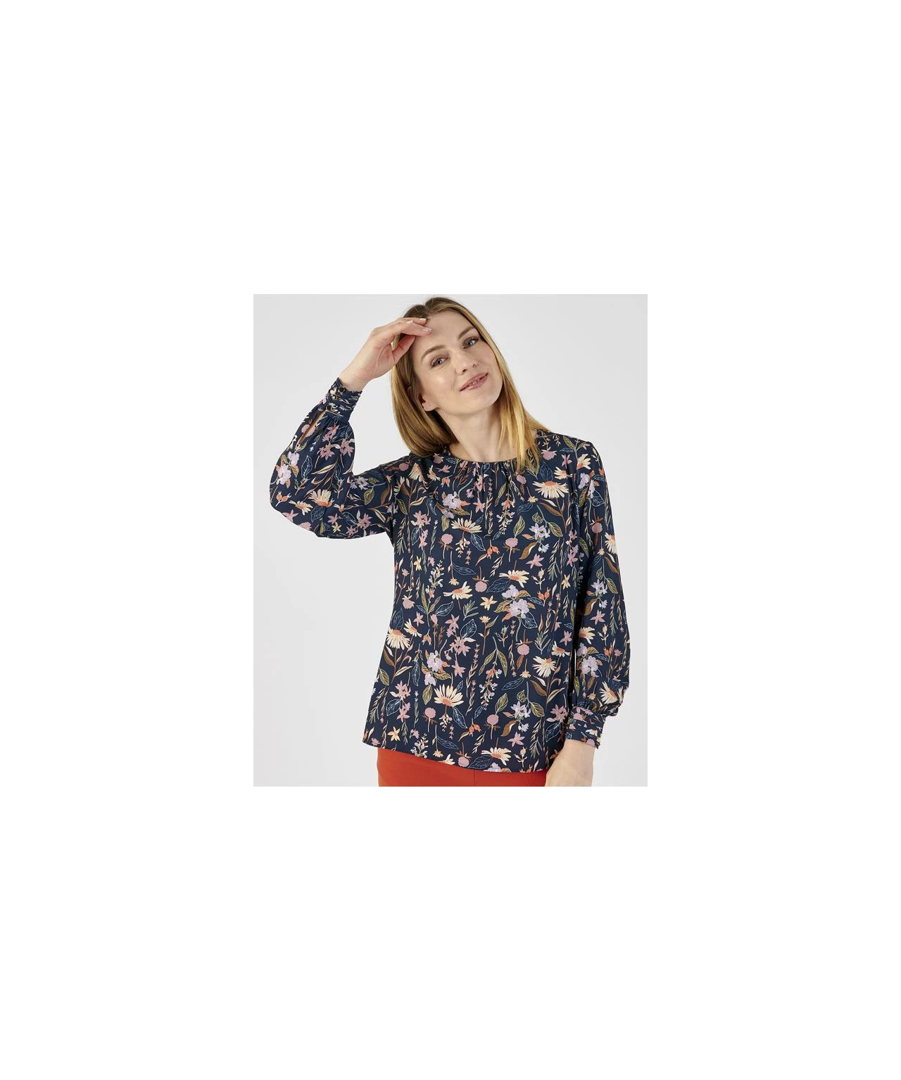 In a striking modern print, our easy wear blouse will update your look in an instant. With a touch of stretch for comfort, with gathering at the neck and cuff detail for a smart look. Woven. Regular fit. Machine washable. 97% Polyester, 3% Elastane. Length: 64cm (25″) approx.