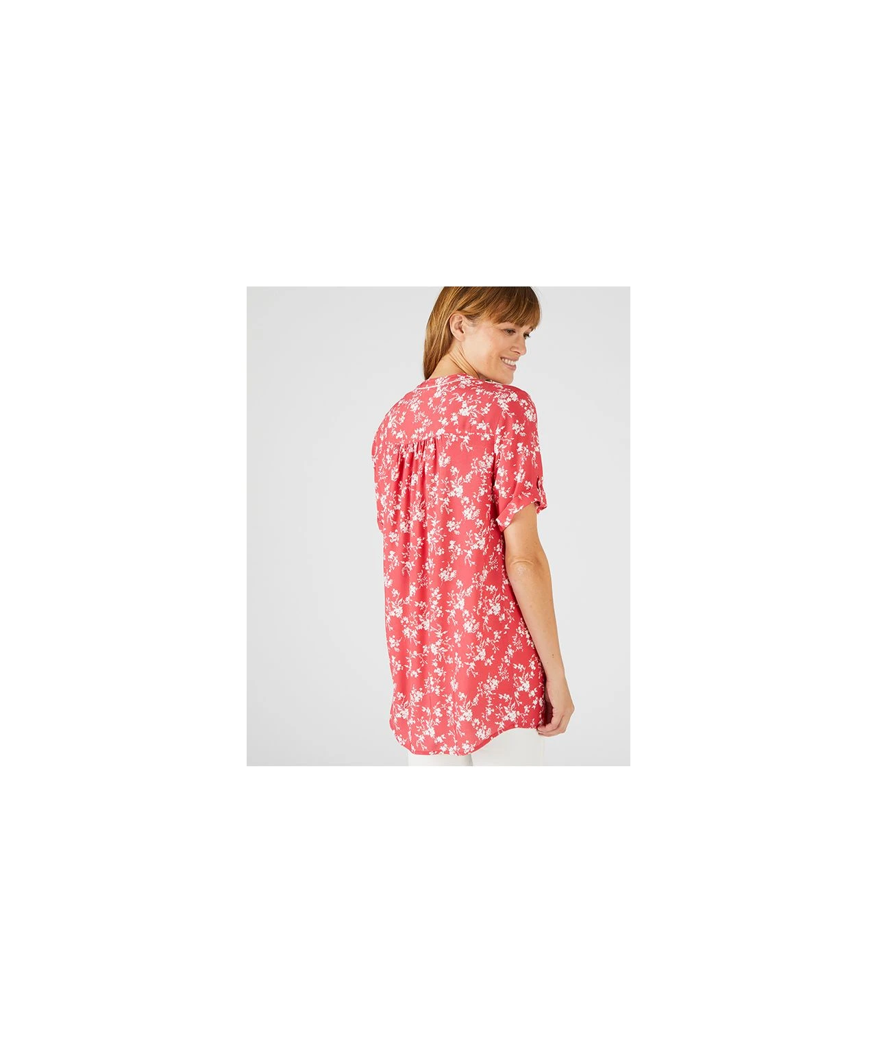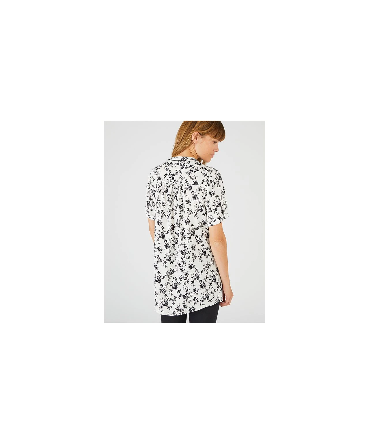 With Tunisian collar and tab-back sleeves. Woven. Regular fit. 100% Viscose. Length: 69cm (27″) approx.
