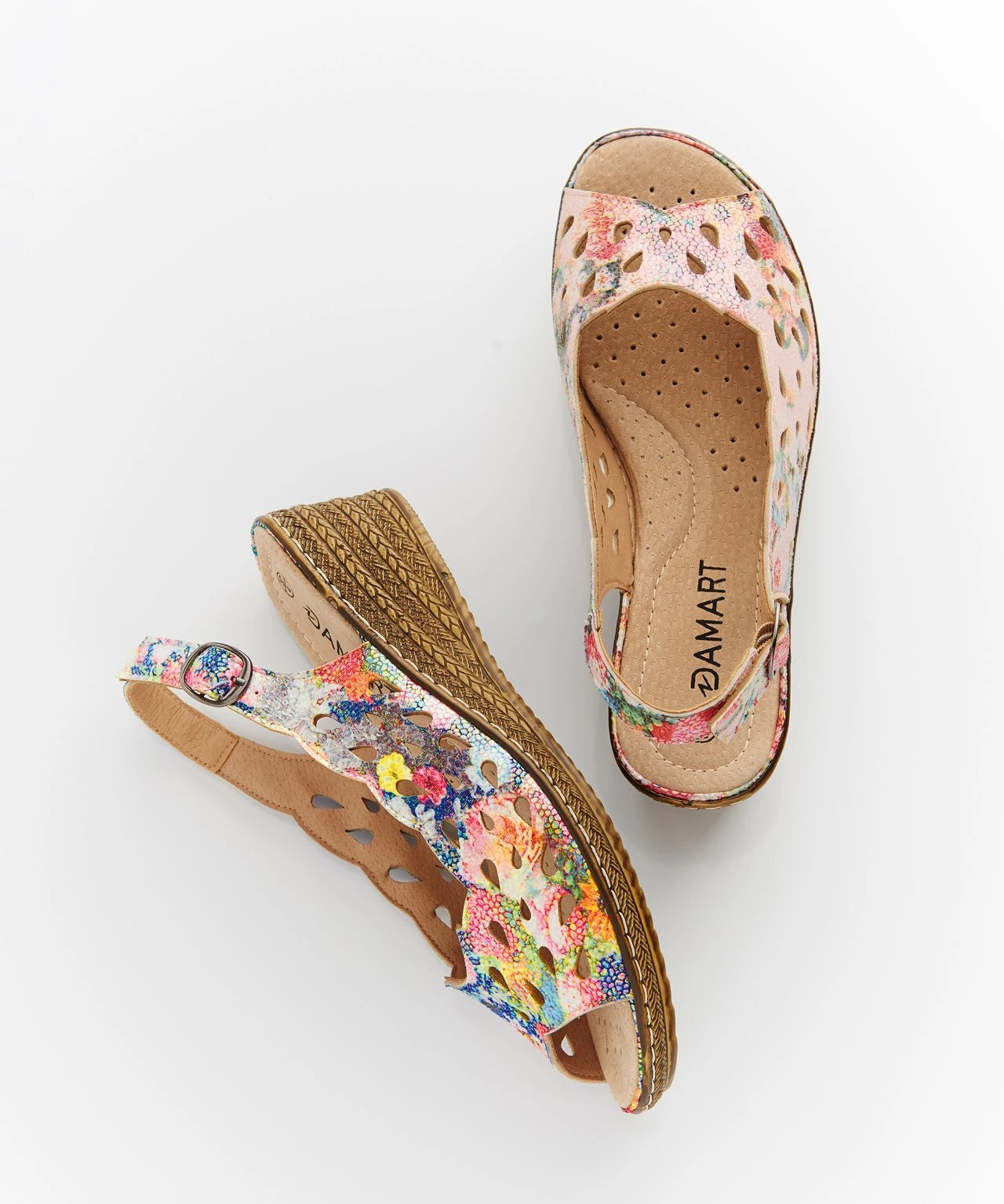 Open-toe sling back style sandal with wedge heel. Leather lined with multicoloured upper soal. Heel height approx 5cm. Upper/Sole: Other materials, Lining: Leather/other materials.