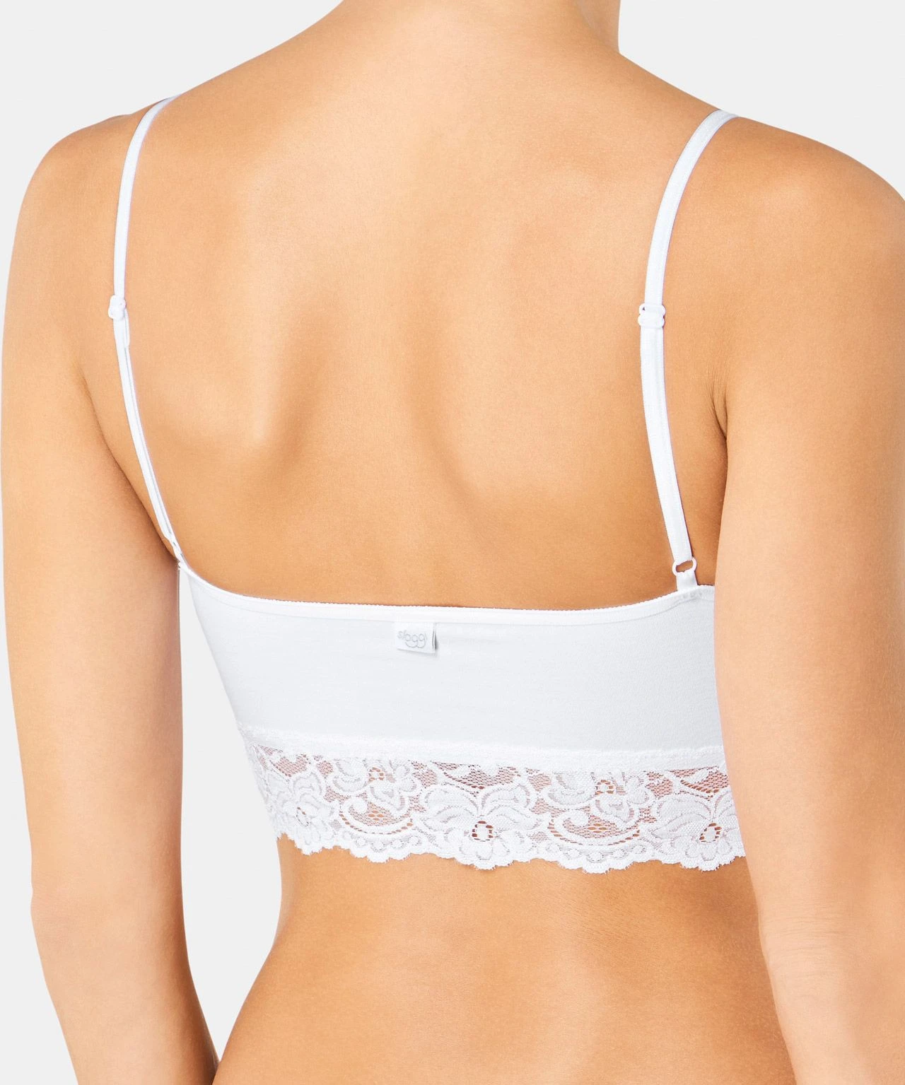 Simple and modern, the Sloggi Romance bralette offers comfort and style in one. With lace detail and no pads, made from a cotton blend fabric for freshness. Team with the matching briefs for a great look. Web Exclusive! Lace Detail. Without pads. Ultra comfortable. 43% Polyamide, 41% Cotton, 16% Elastane.