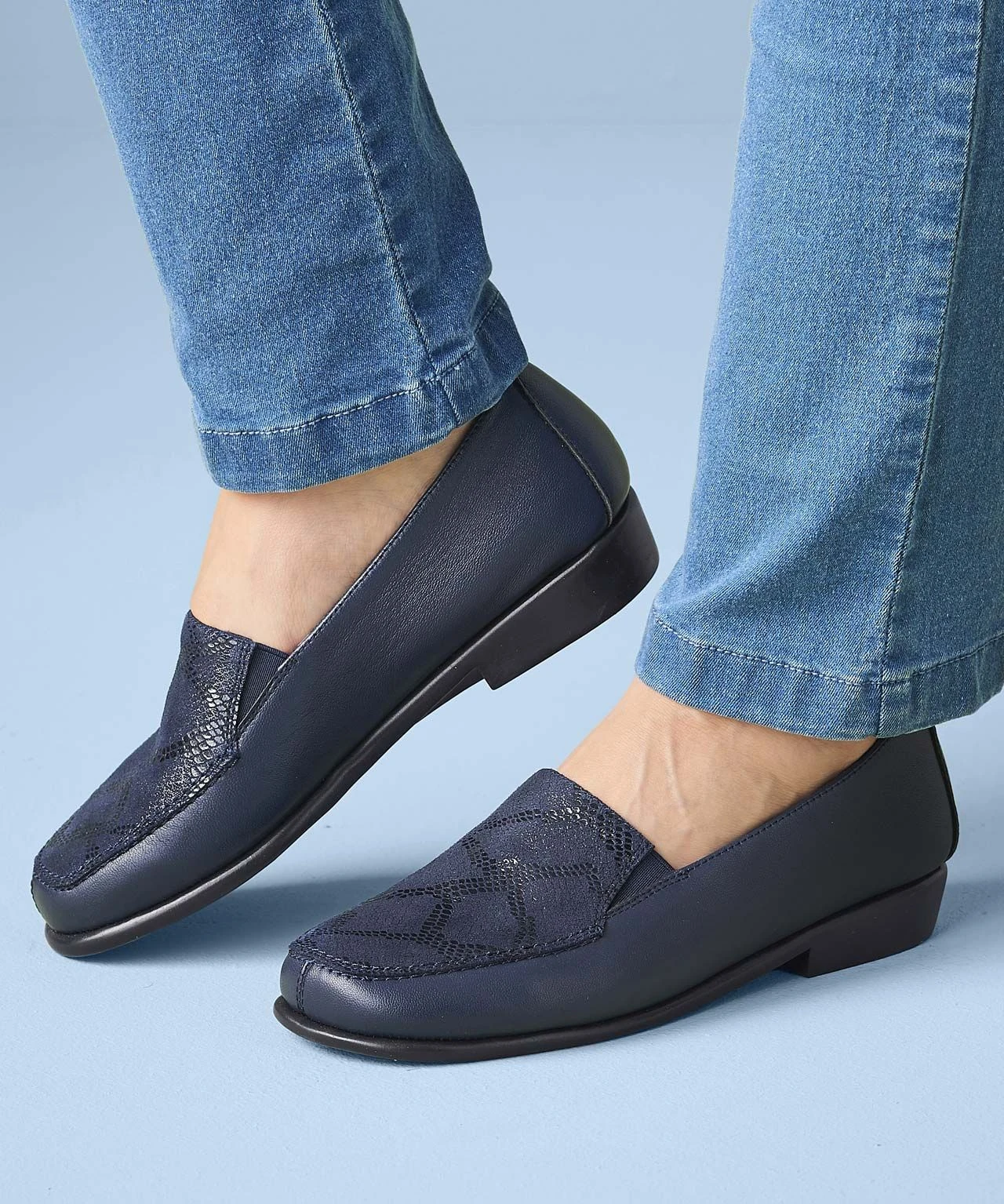 We think our simply styled ladies moccasins are the flat shoes your wardrobe has been waiting for. Designed for timeless wearability with a removable insole for your perfect fit. Finished with comfy stretch inserts and a flexible sole, for all-day ease. Heel height: approx. 2.5cm. Upper: Leather. Lining: Leather/Textile materials. Sole: Other materials.