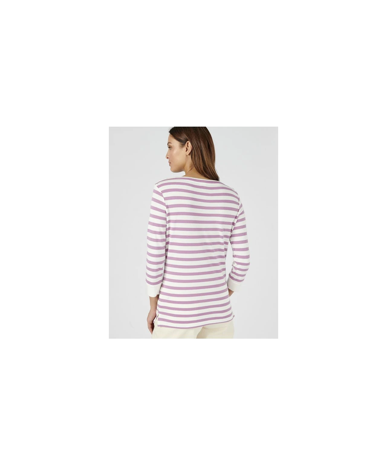 Ideal for the everyday look, this is a great one to pop on and head out. With timeless stripes in purple or green, and a smart boat collar, with button detail to shoulders This is great teamed with jeans or comfy joggers. Side split hem. Knitted. Slim fit. 50% Cotton, 50% Modal. Length: 64cm (25″) approx.