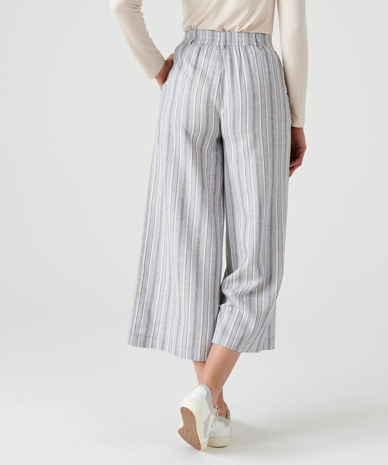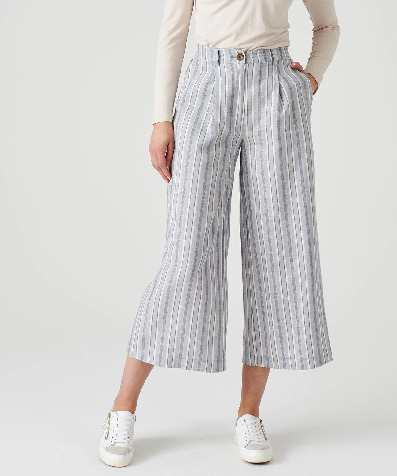 In our great quality linen blend fabric, these 7/8 length wide leg trousers are an essential for warmer days.
