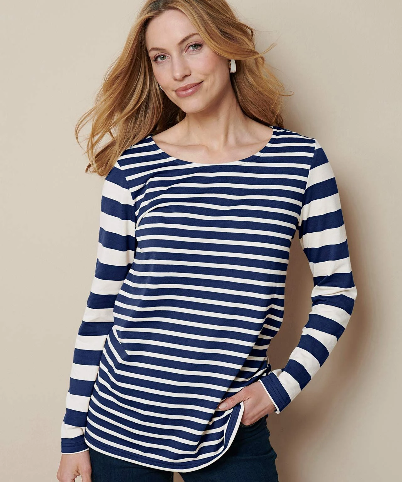 In ever-popular stripes, and a warm thermal fabric, this is a great top that you’ll turn to, time and again. With side slit detail in a roomy fit for endless comfort, from weekday to weekend. Comfort fit. 65% Polyester, 35% Viscose. Front: 69cm (27″) Back: 74cm (29″).