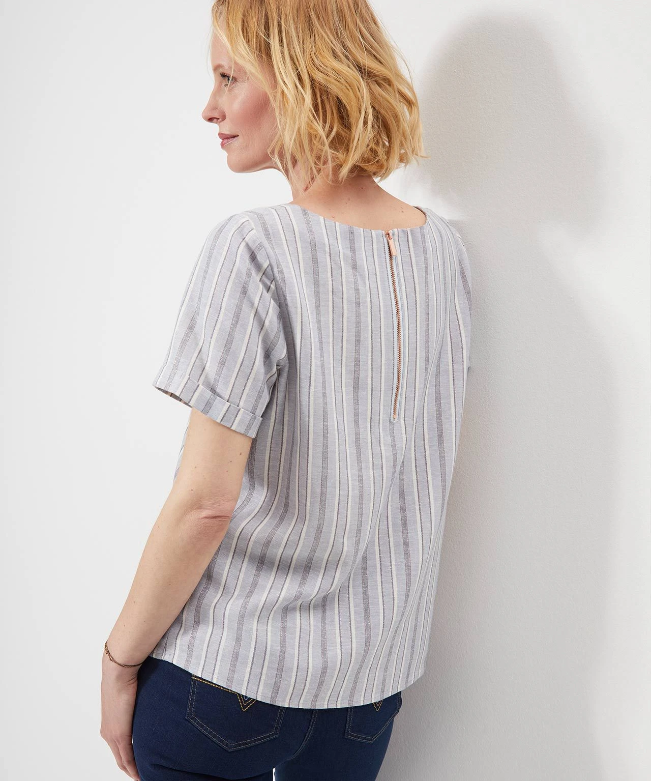 Cool and modern, our linen blend top has turn-up sleeves and back zip fastening. A hint of sparkle gives it a stylish twist.