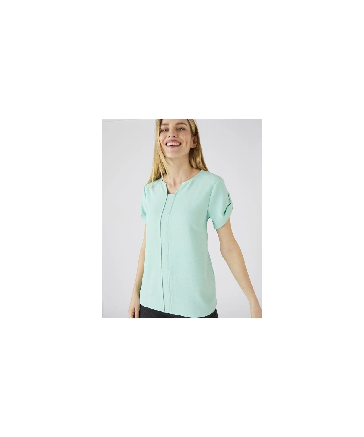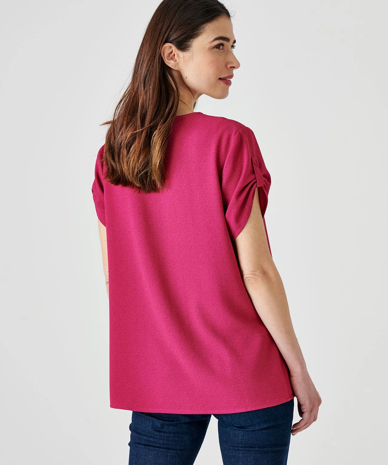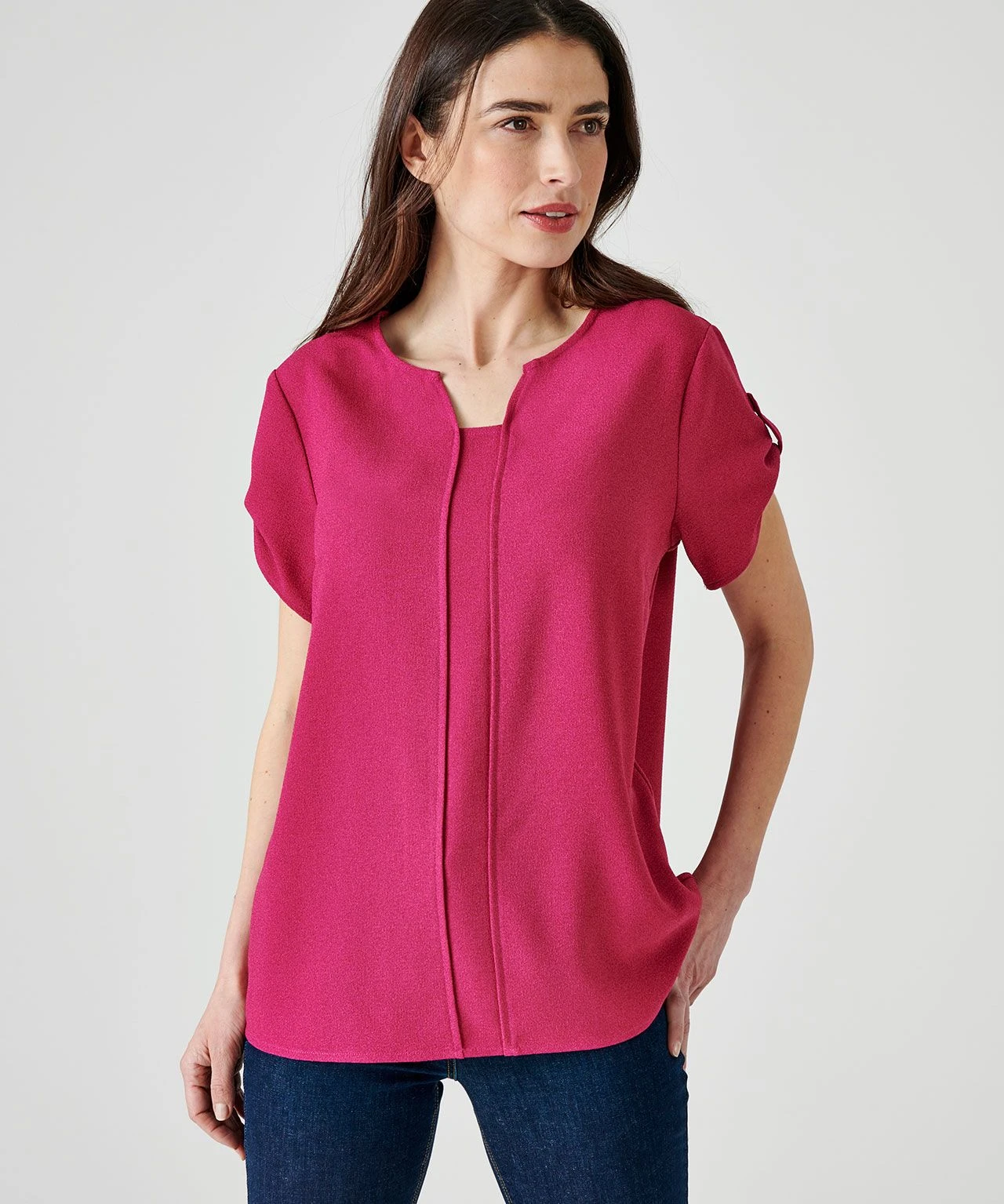 Tab back sleeves and front seaming detail make this short sleeve top a modern must-have. In vibrant colours to liven up any look.