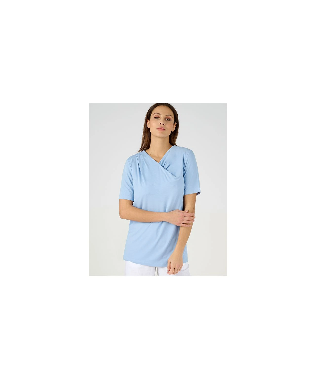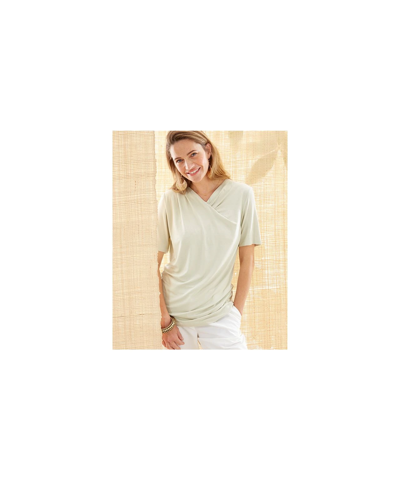 An asymmetric neckline gives this stretch jersey top a stylish twist.