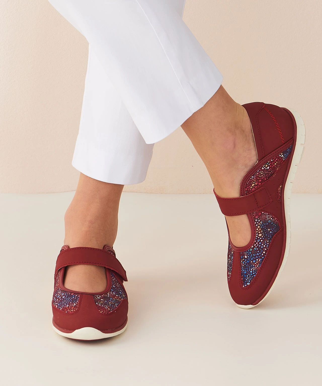 We’ve given these touch fasten shoes a pop of colour, to brighten up your casual look. Great with your weekend outfits for comfort and style in one. Available in red and navy, to suit any style. Heel height: approx. 2cm. Upper/Sock: Leather. Lining: Textile. Sole: Other materials.