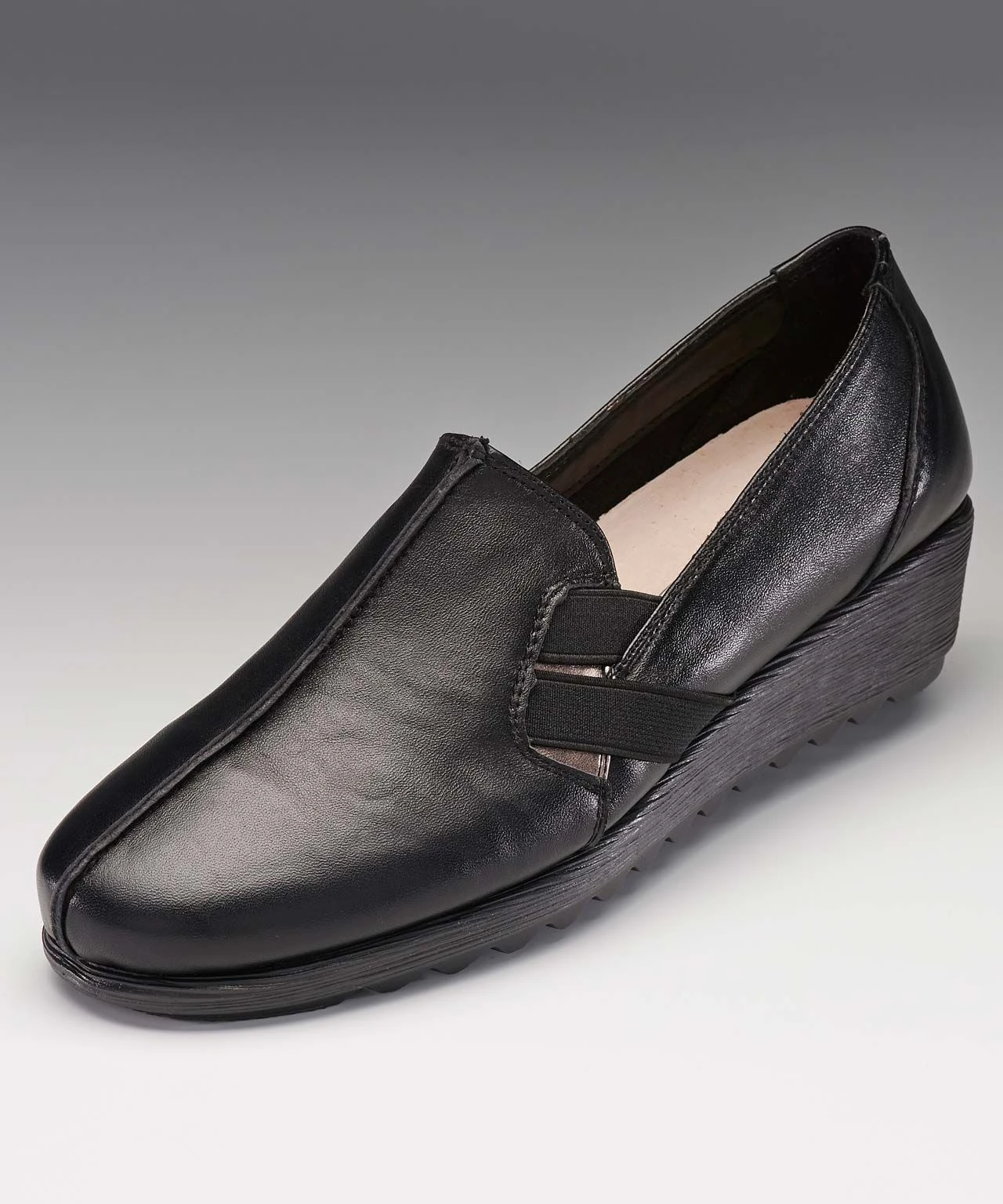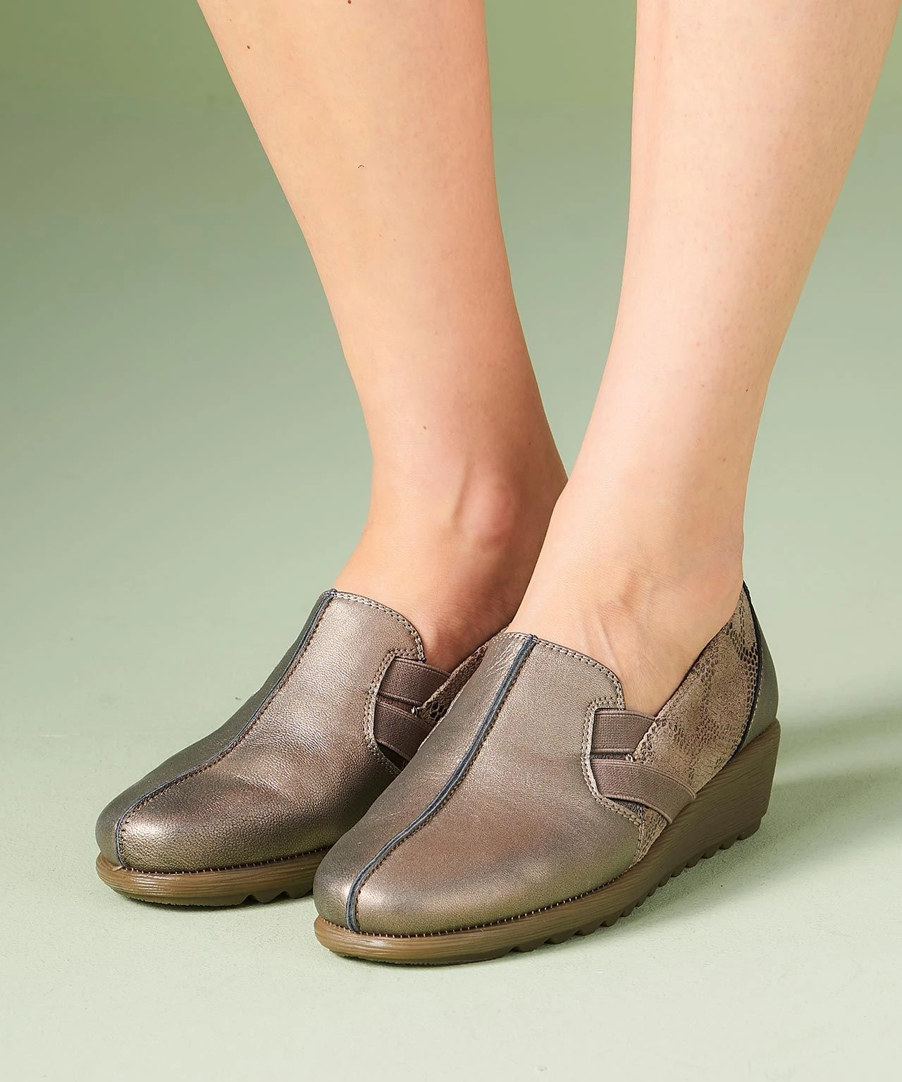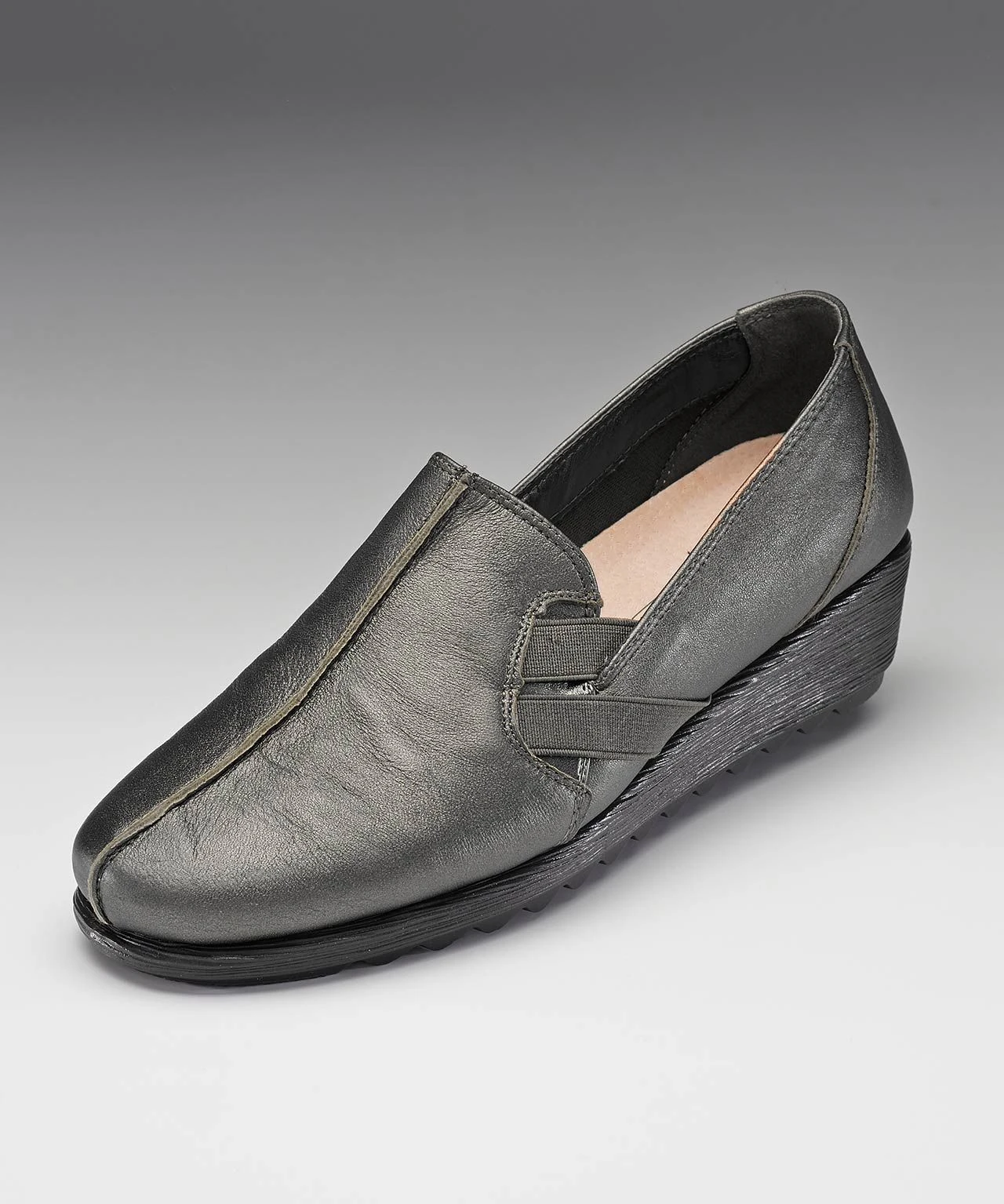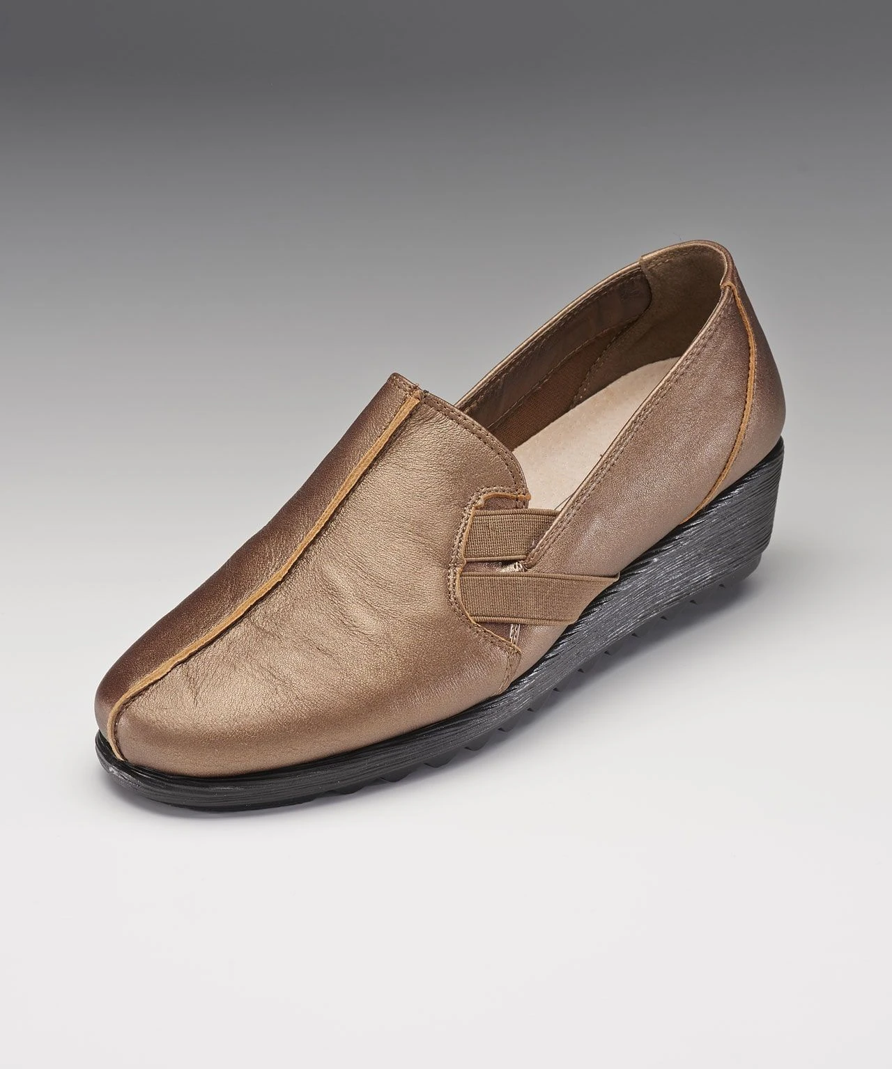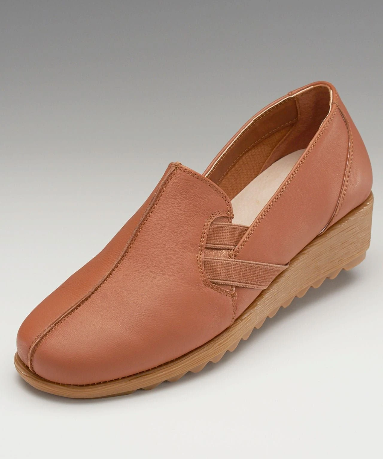 Women’s moccasin style shoes with stretch inserts for pull-on ease, a grippy sole and removable insole so you can get the fit right for you.