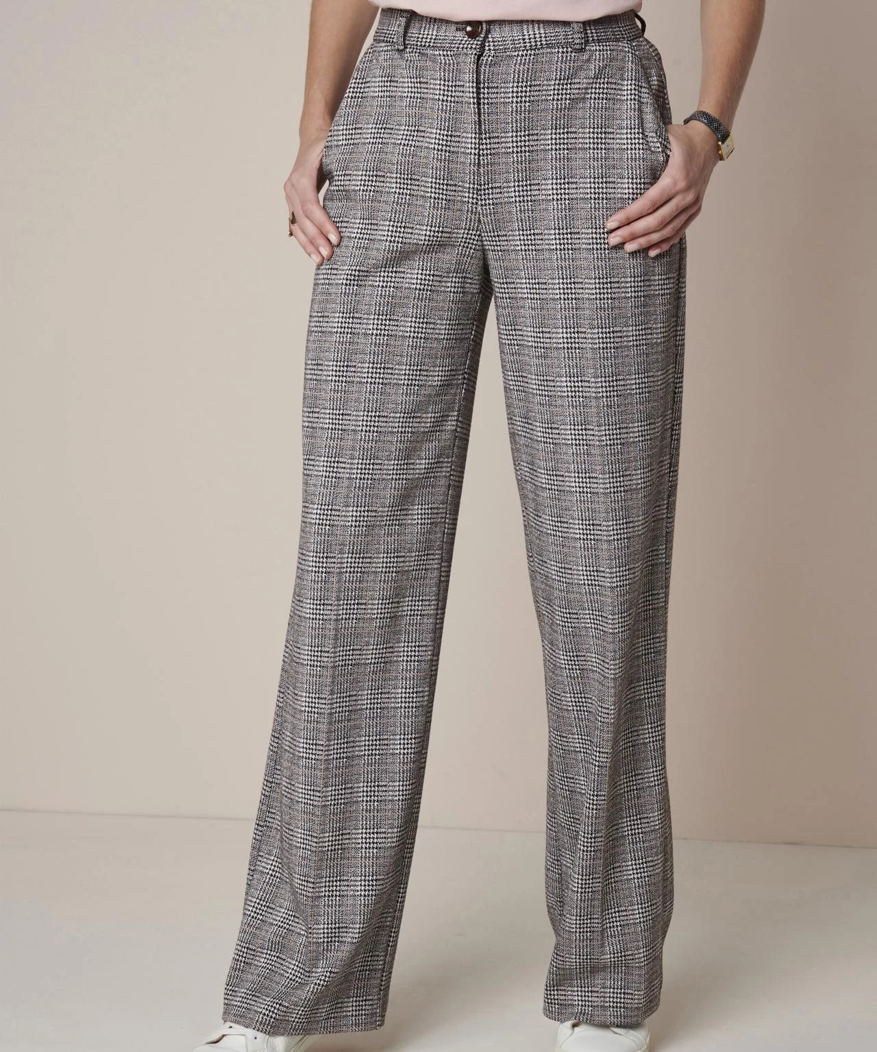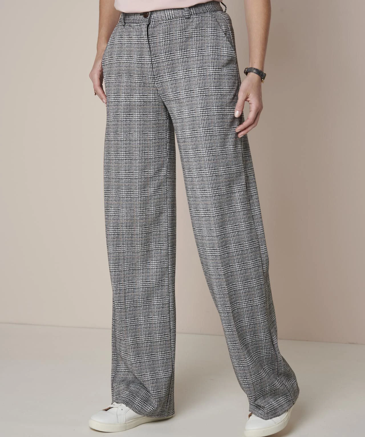 Our wide leg check trousers mix smart, flattering style with comfort.