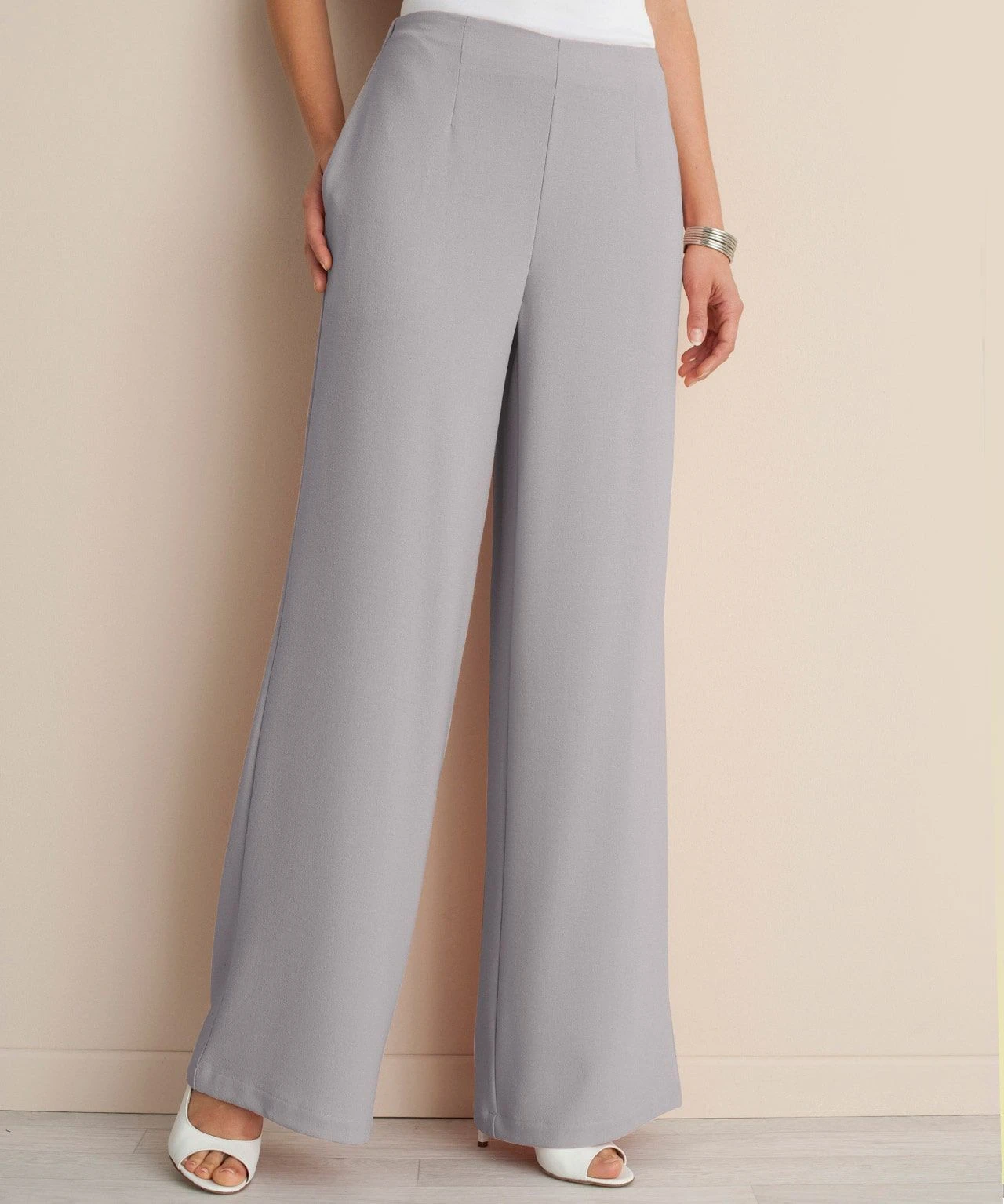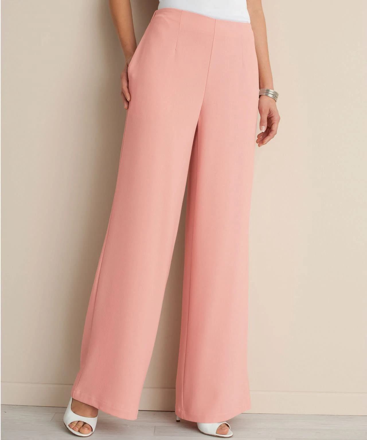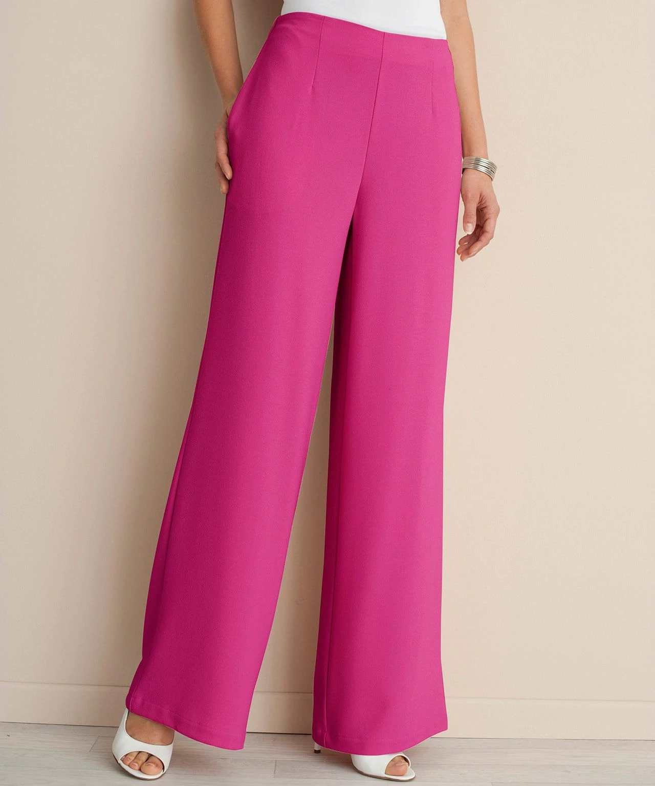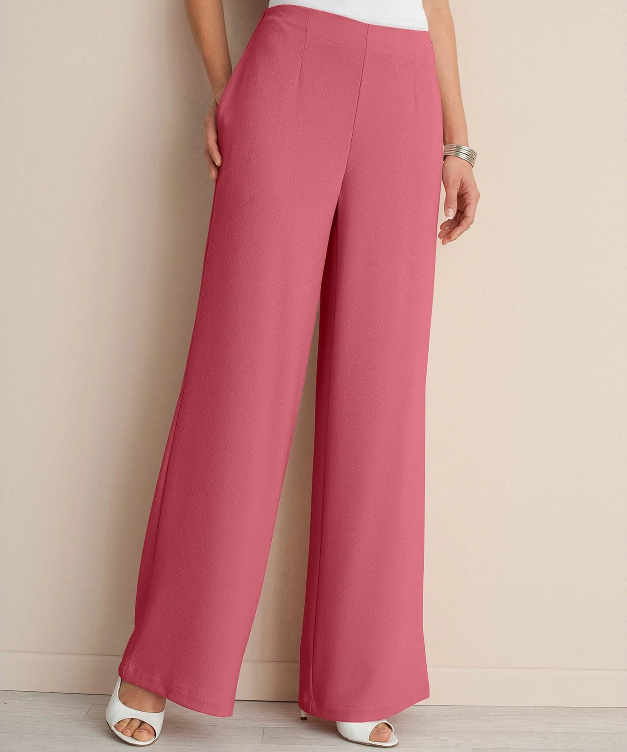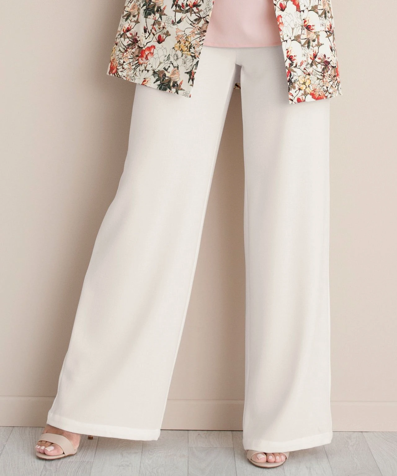 Smart wide leg ladies trousers in a soft, stretch fabric for coolness. Pull on for ease and very versatile.