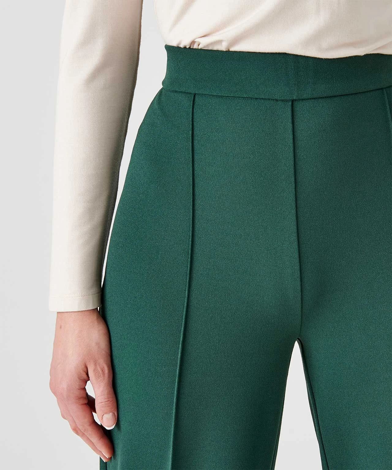 The secret to relaxed style this spring! Comfort meets elegance with our flattering and easy care wide leg trousers. With stitch front pleat detail in our stretch, easy care fabric for feel good, flattering style. Knitted. Comfort fit.