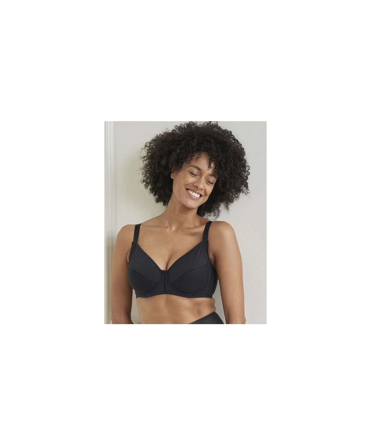A stylish underwired bra in a modern ribbed fabric with satin effect trim.